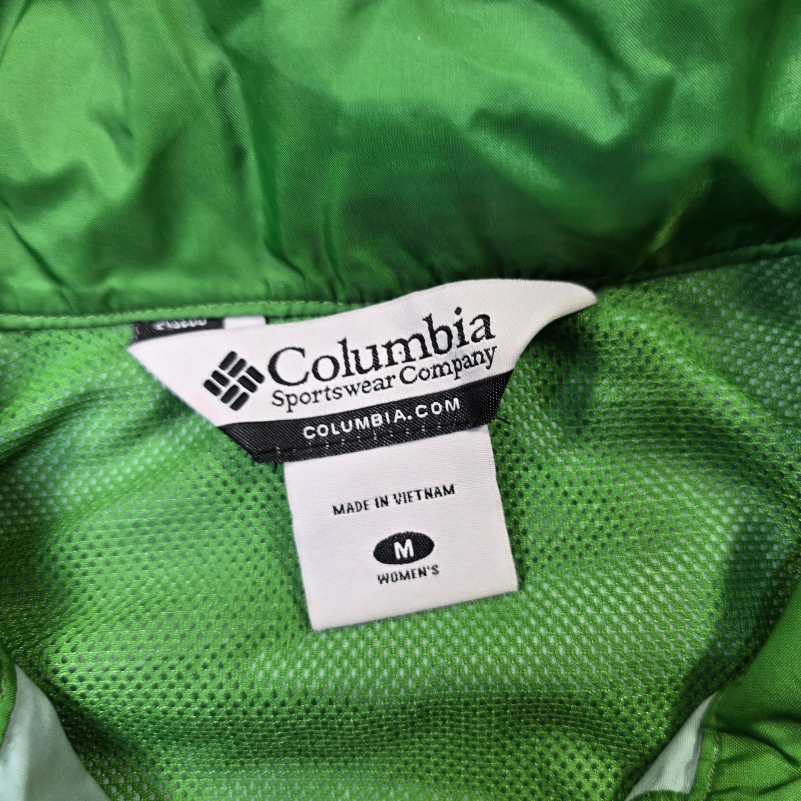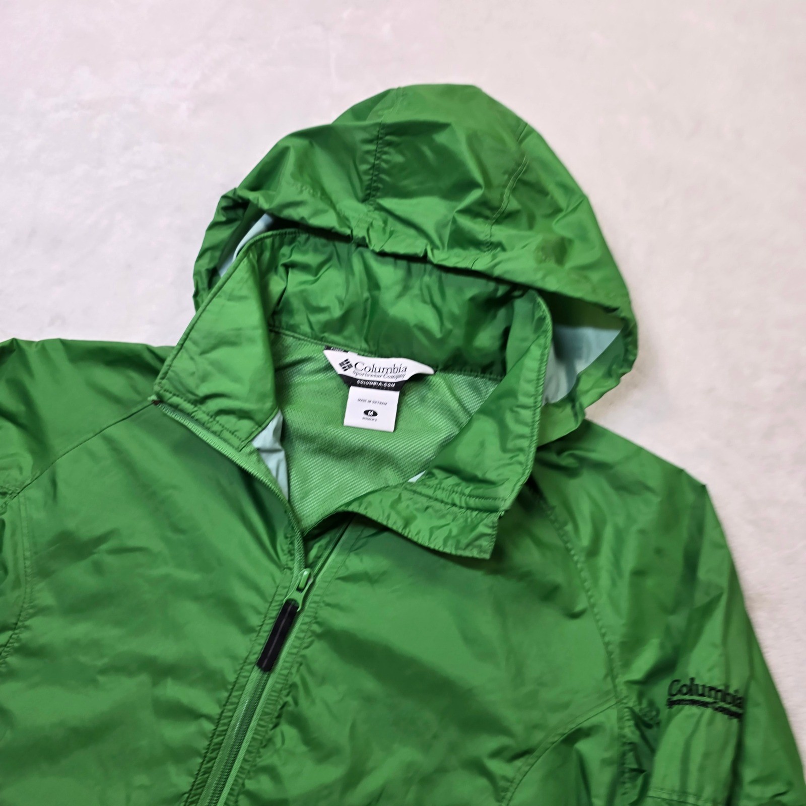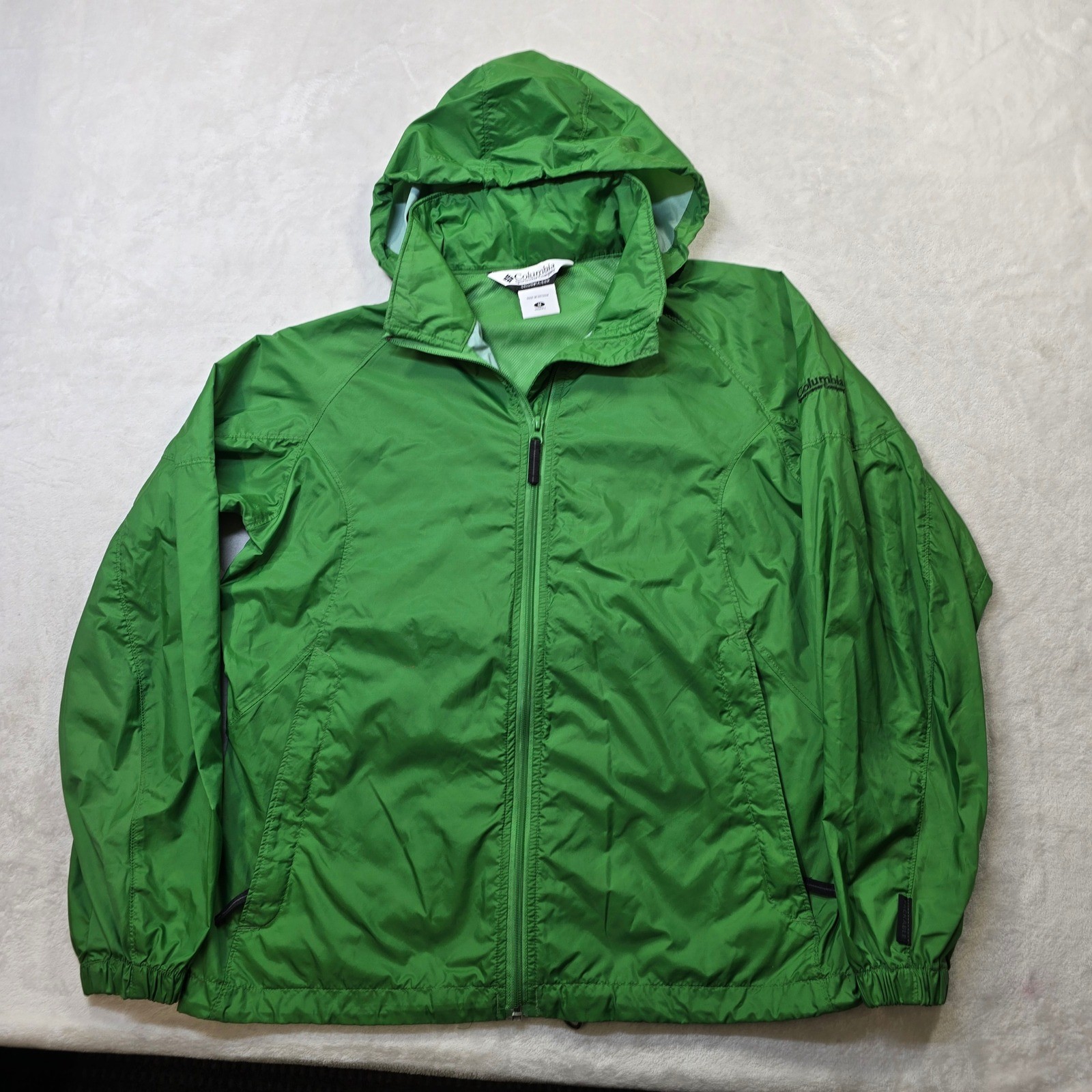 Columbia Sportswear Ltweight Jacket Womens Medium Green Stowaway Hood Wind Rain