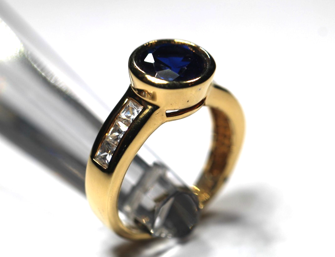 как выглядит Gold Vermeil Sterling Silver and Blue Lab Created Sapphire Ring Size 6 фото