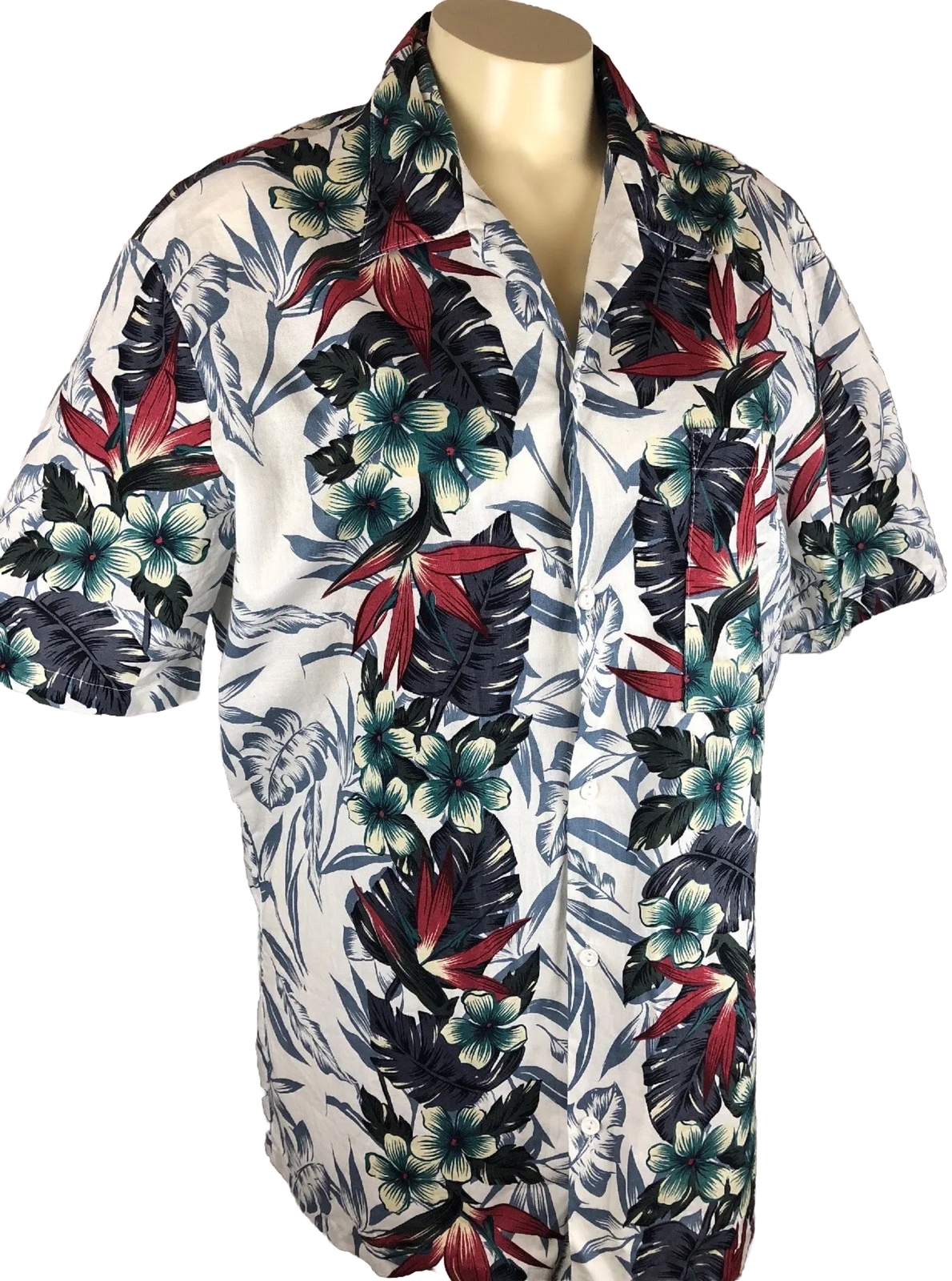 Vintage Hawaiian Floral Mens Shirt Size Medium Resort Wear Tropical Luau Hawaii