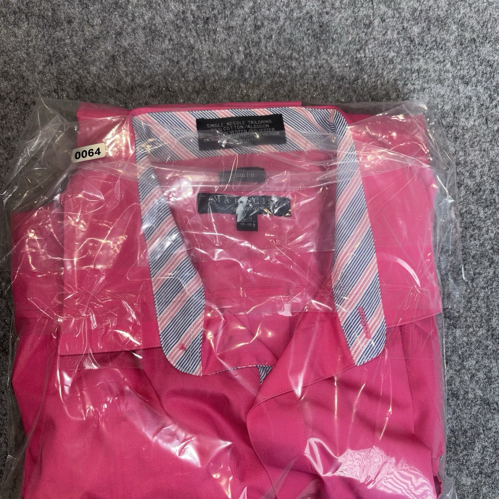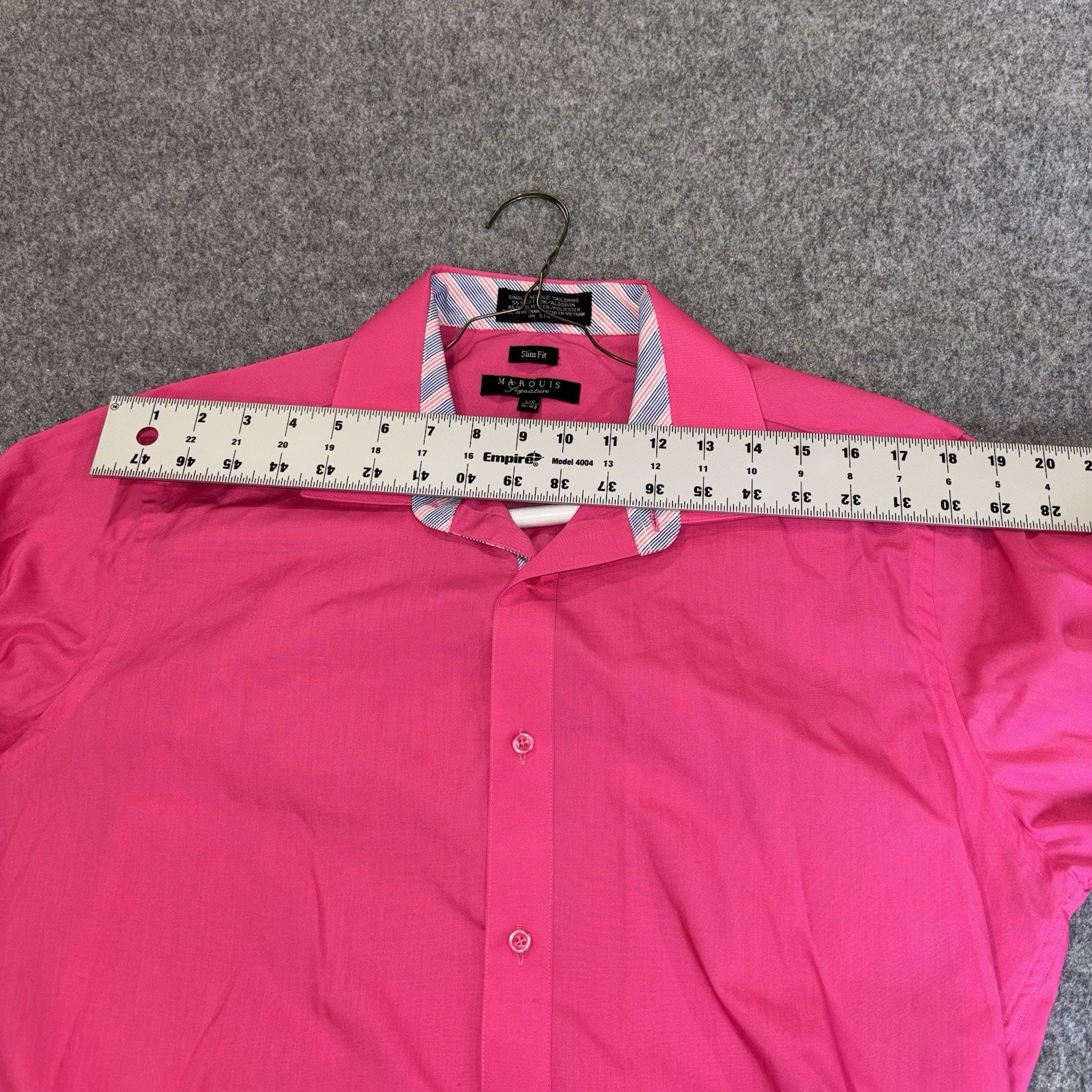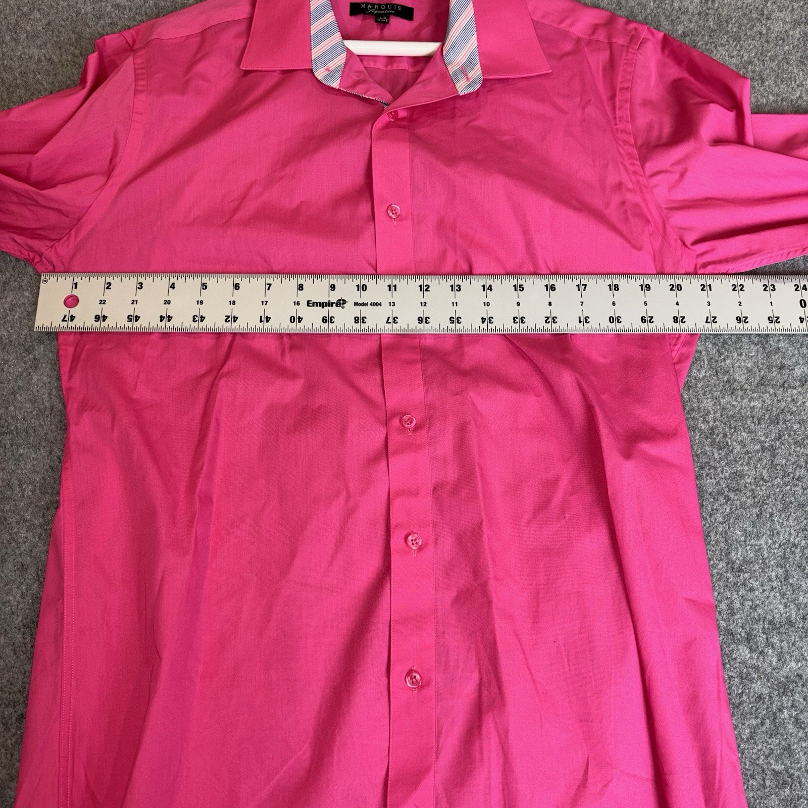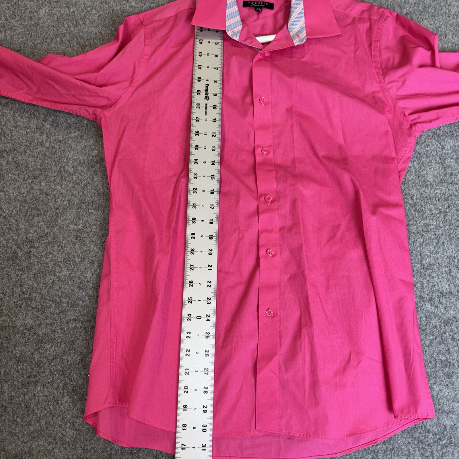 как выглядит Marquis Signature Mens Pink Dress Shirt L 16-16.5 Slim Fit Long Sleeve Button Up фото