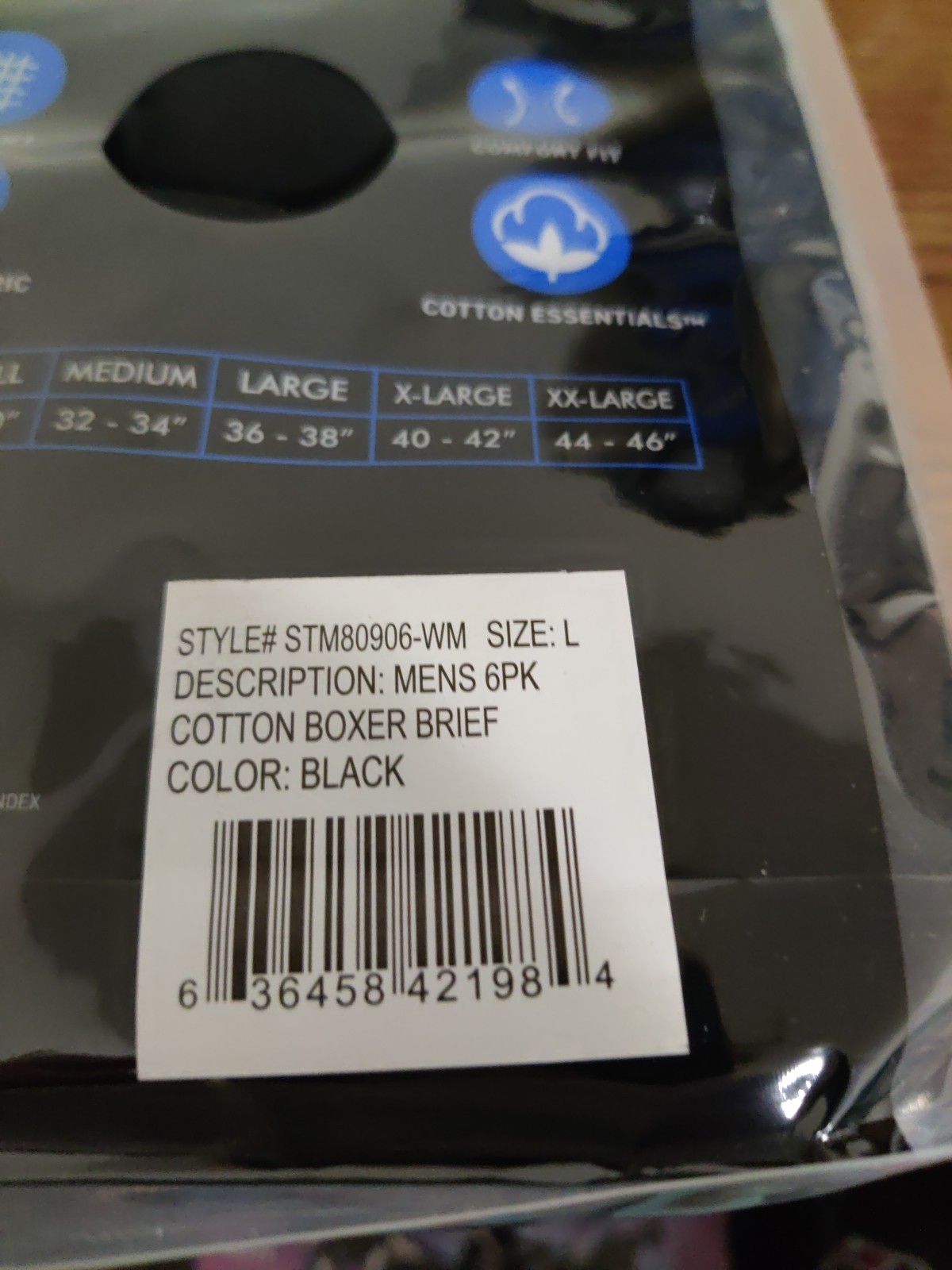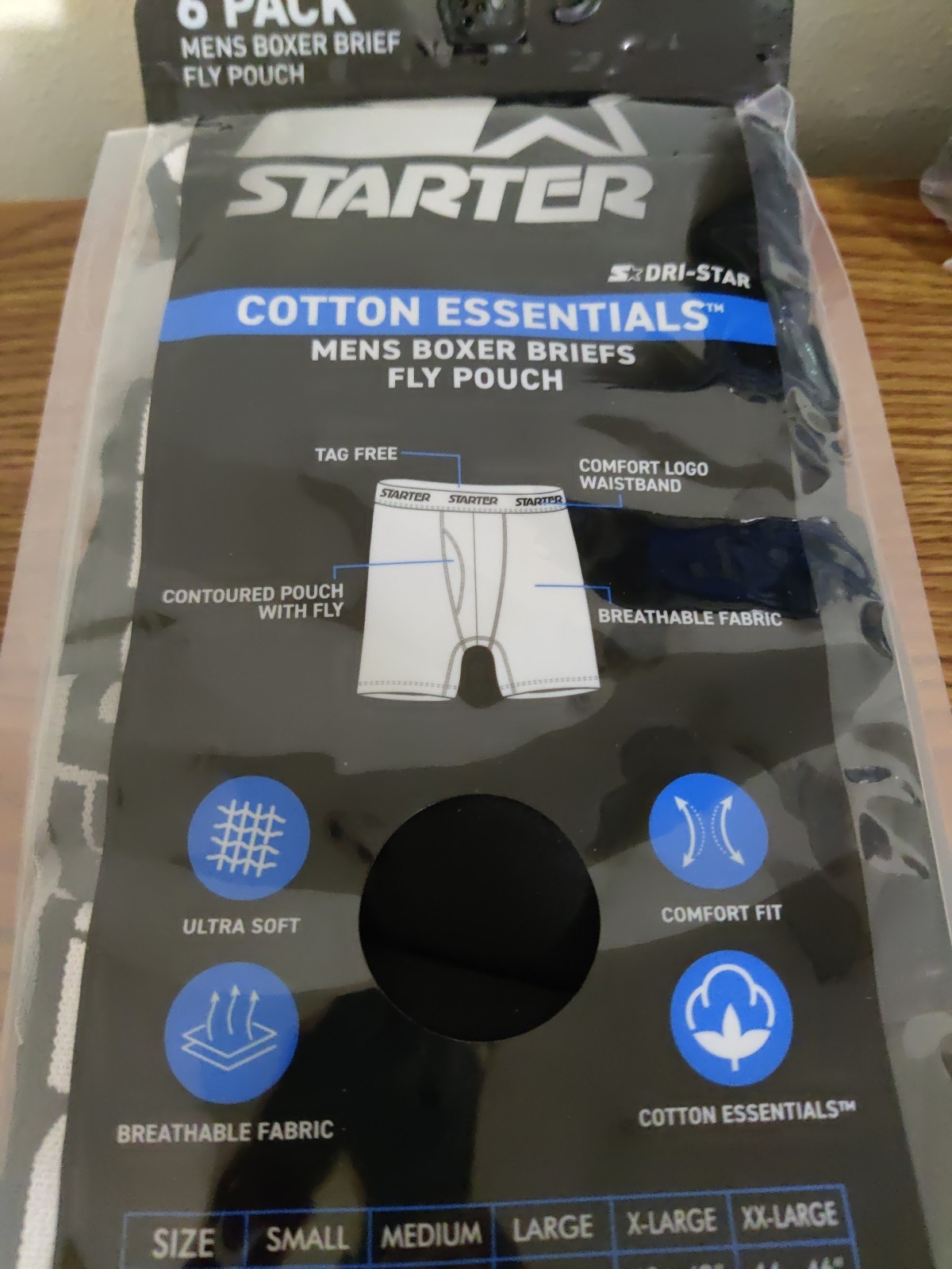 как выглядит 12-PACK BLACK Mens LARGE 95 -Cotton Essentials Boxer Briefs Fly Pouch Starter фото