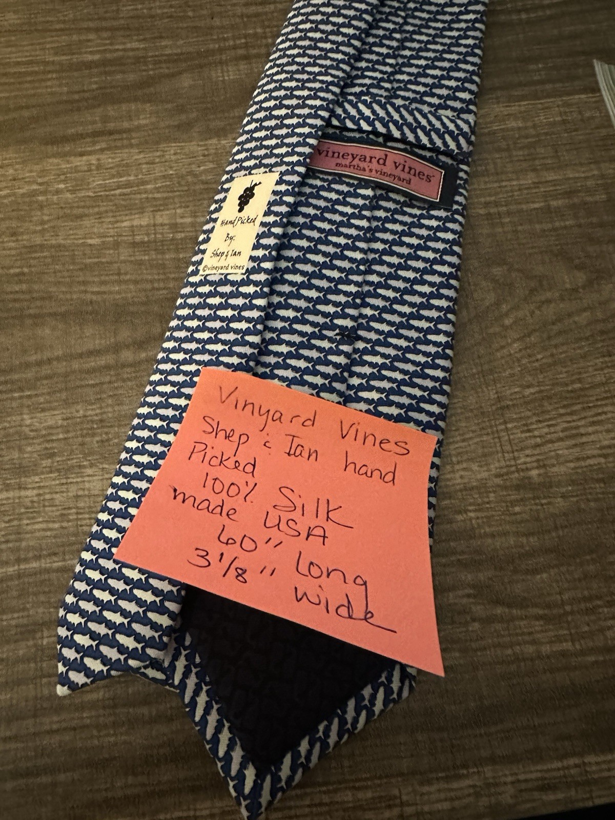 как выглядит Vineyard Vines Tie Navy Blue Shark Marthas Vineyard Mens Silk фото