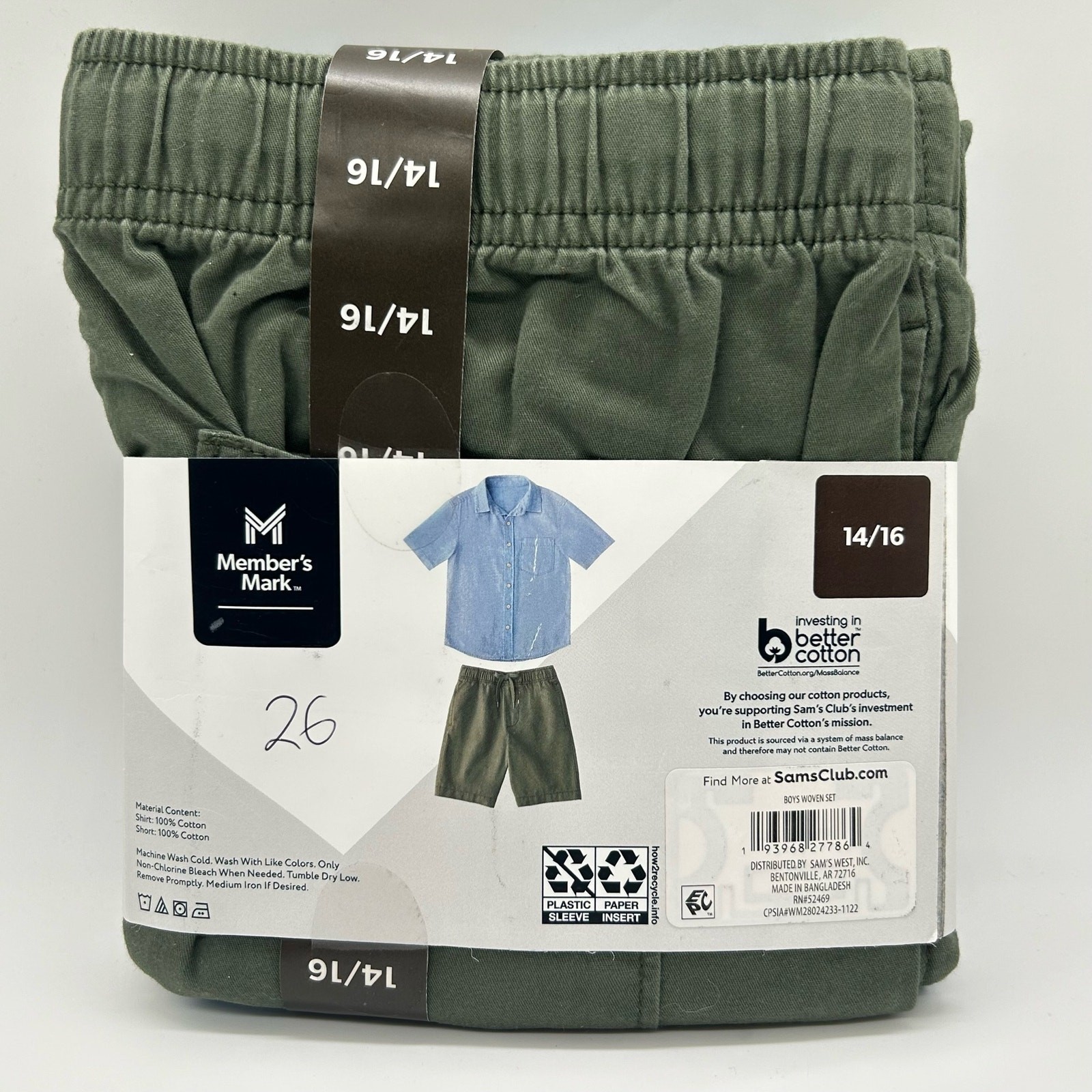 Member's Mark Boys 14/16 Blue Green 2 Set Short Sleeve Drawstring Short NEW