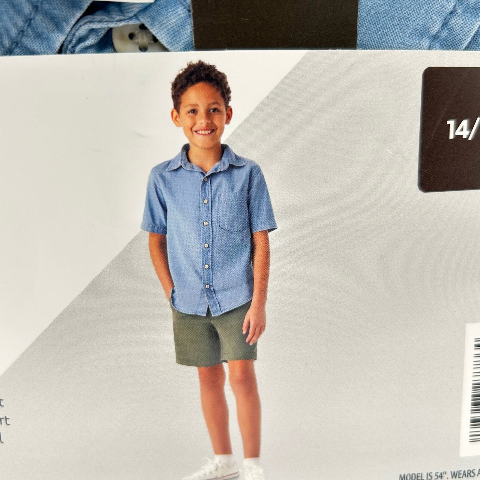 как выглядит Members Mark Boys 14/16 Blue Green 2 Set Short Sleeve Drawstring Short NEW фото