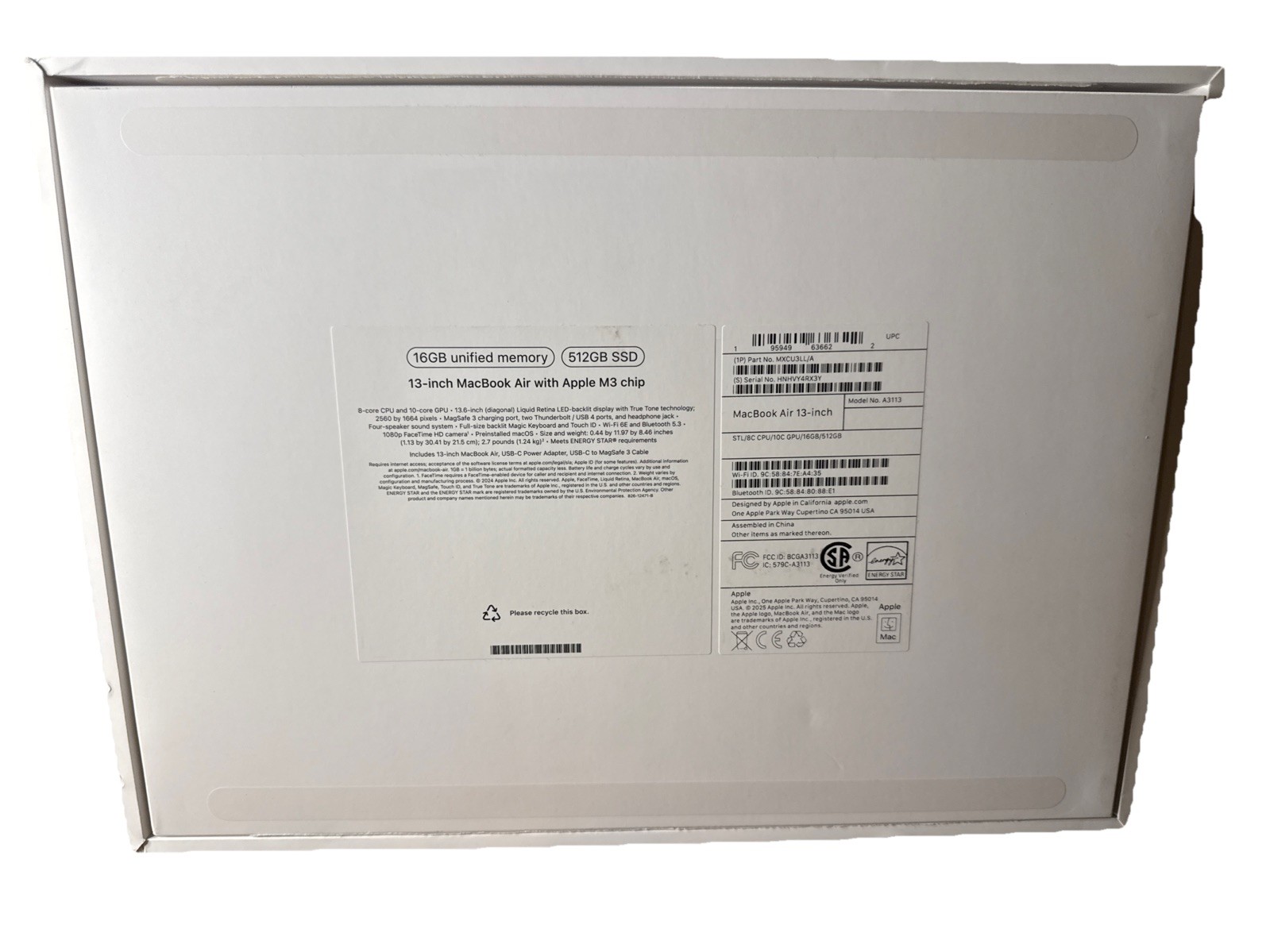 как выглядит Apple MacBook Air 13-Inch M3 Silver 512GB SSD Model A3113 EMPTY BOX ONLY фото