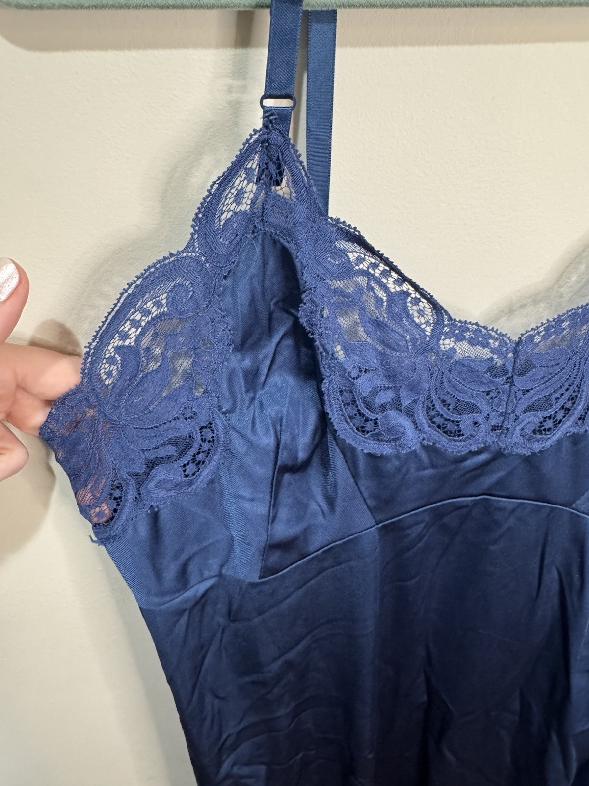 как выглядит Vtg Silky Nylon Navy Full Slip Nightgown Dress Size 34 Wondermaid Union Made фото