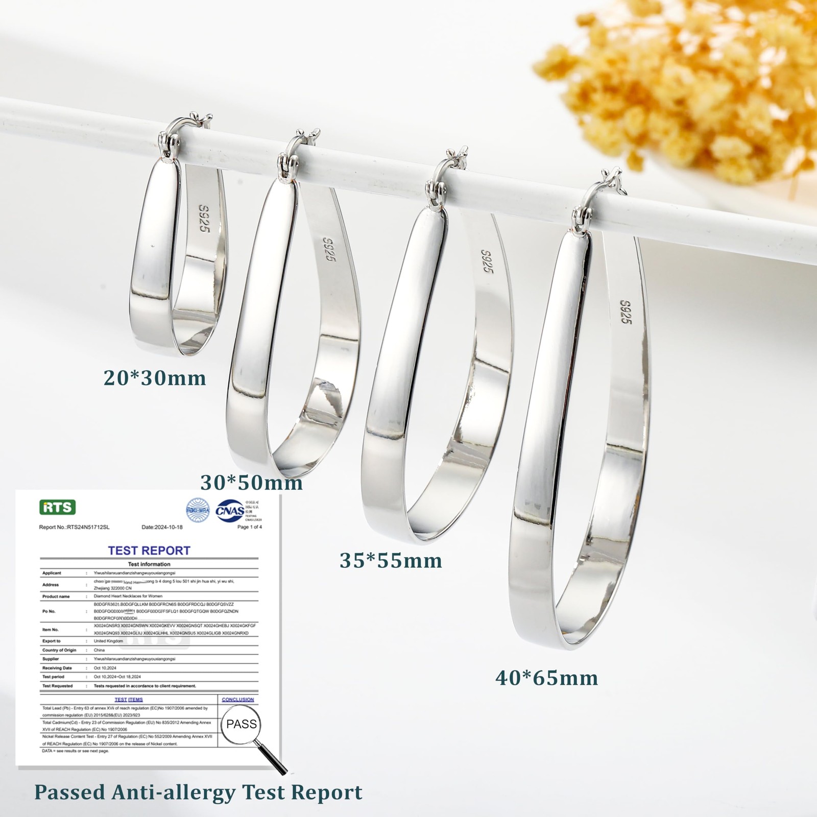 DORANA 925 Sterling Silver Hoop Earrings for Women Large Oval Silver-40 65mm