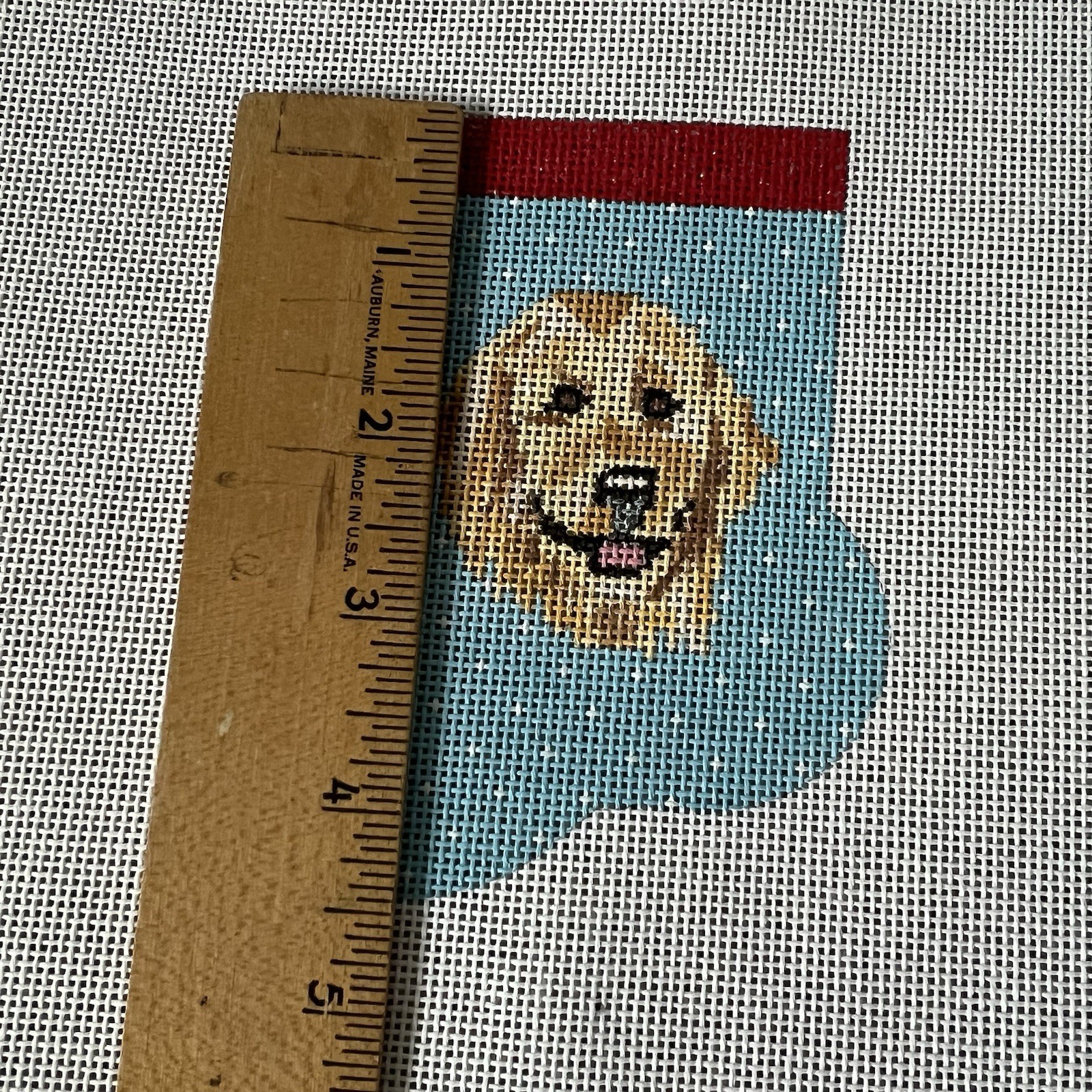 A Bradley Golden Retriever Needlepoint Canvas 18 Ct Mini Stocking Ornament