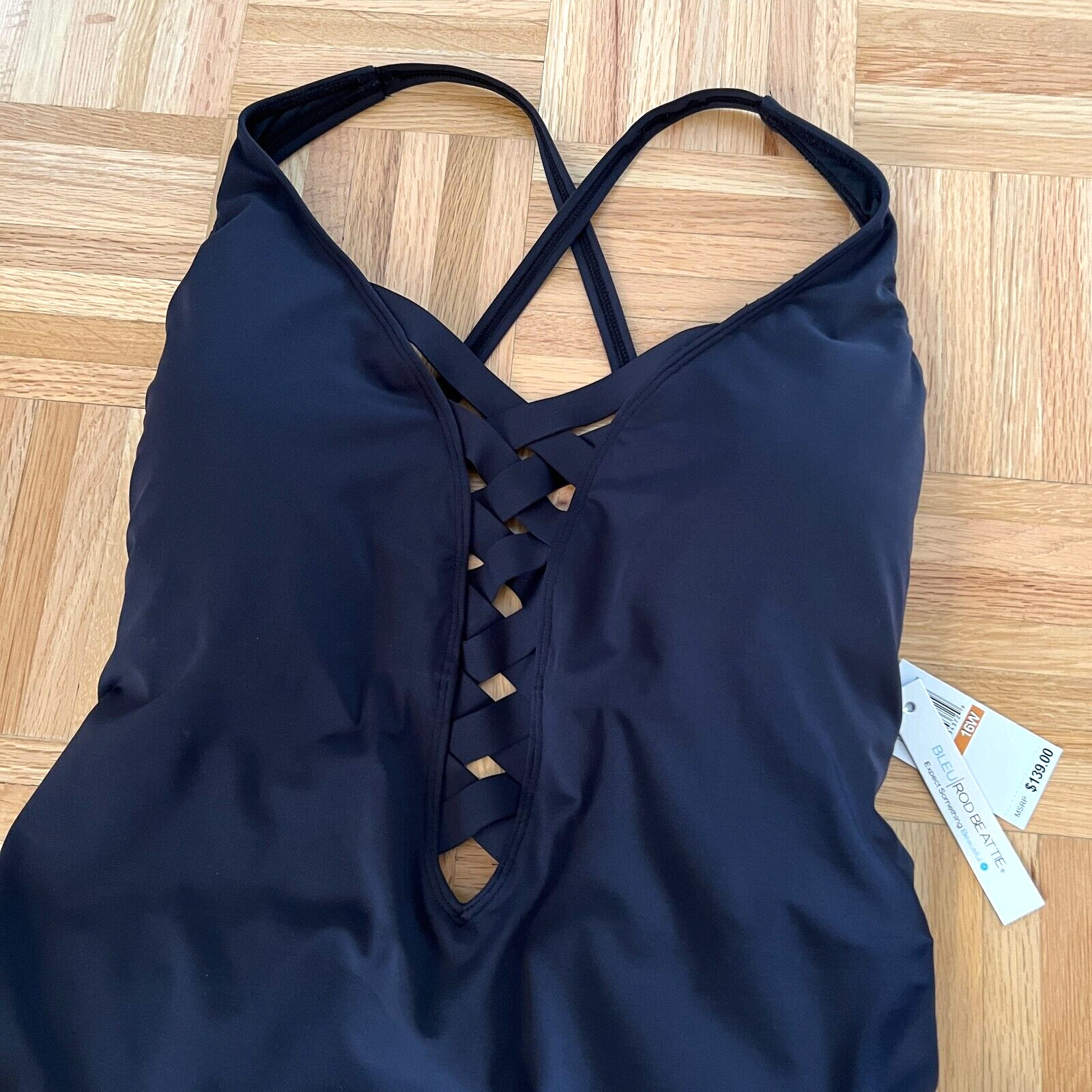 Bleu Rod Beattie 16W Black Basket Case Basket Weave Mio One Piece Swimsuit NWT