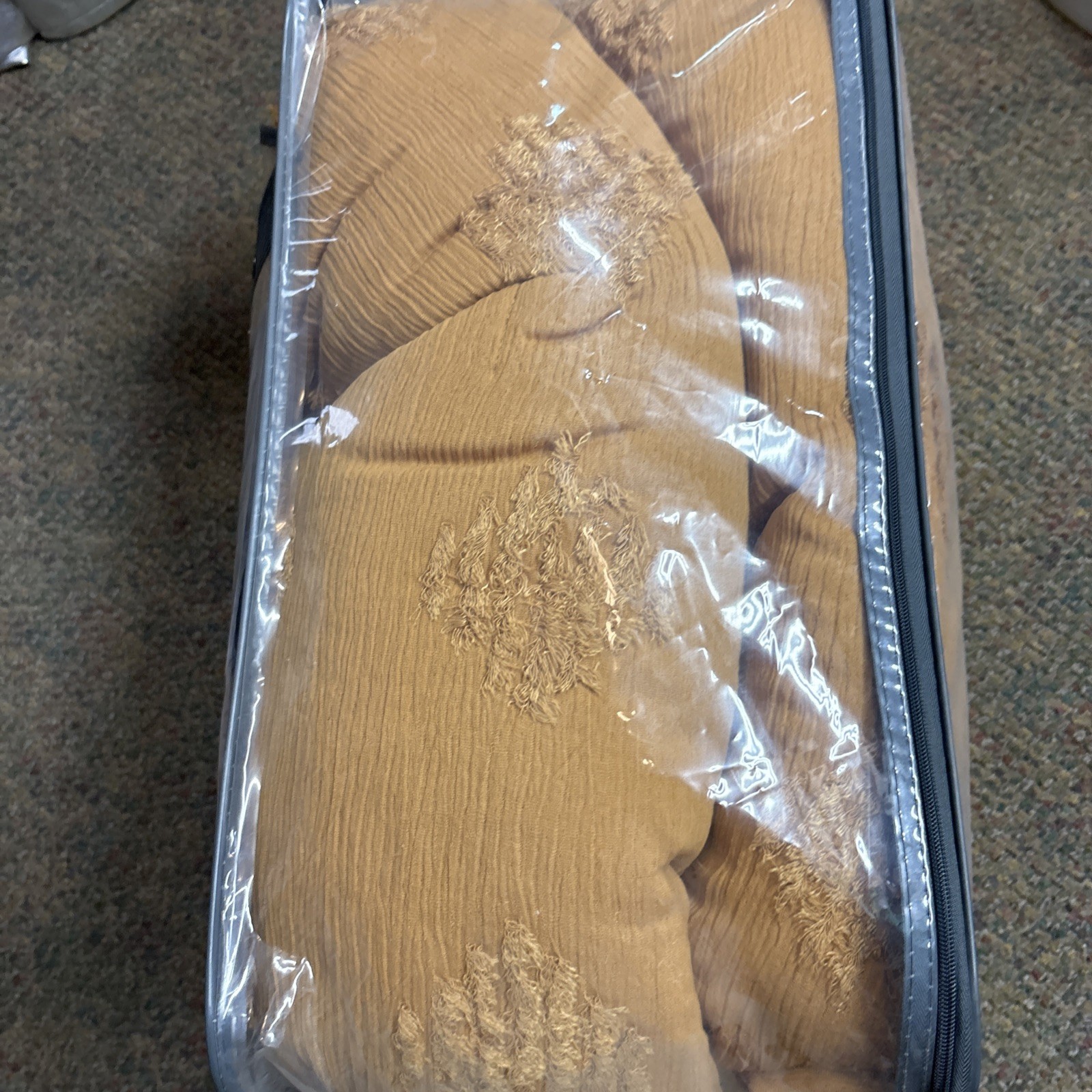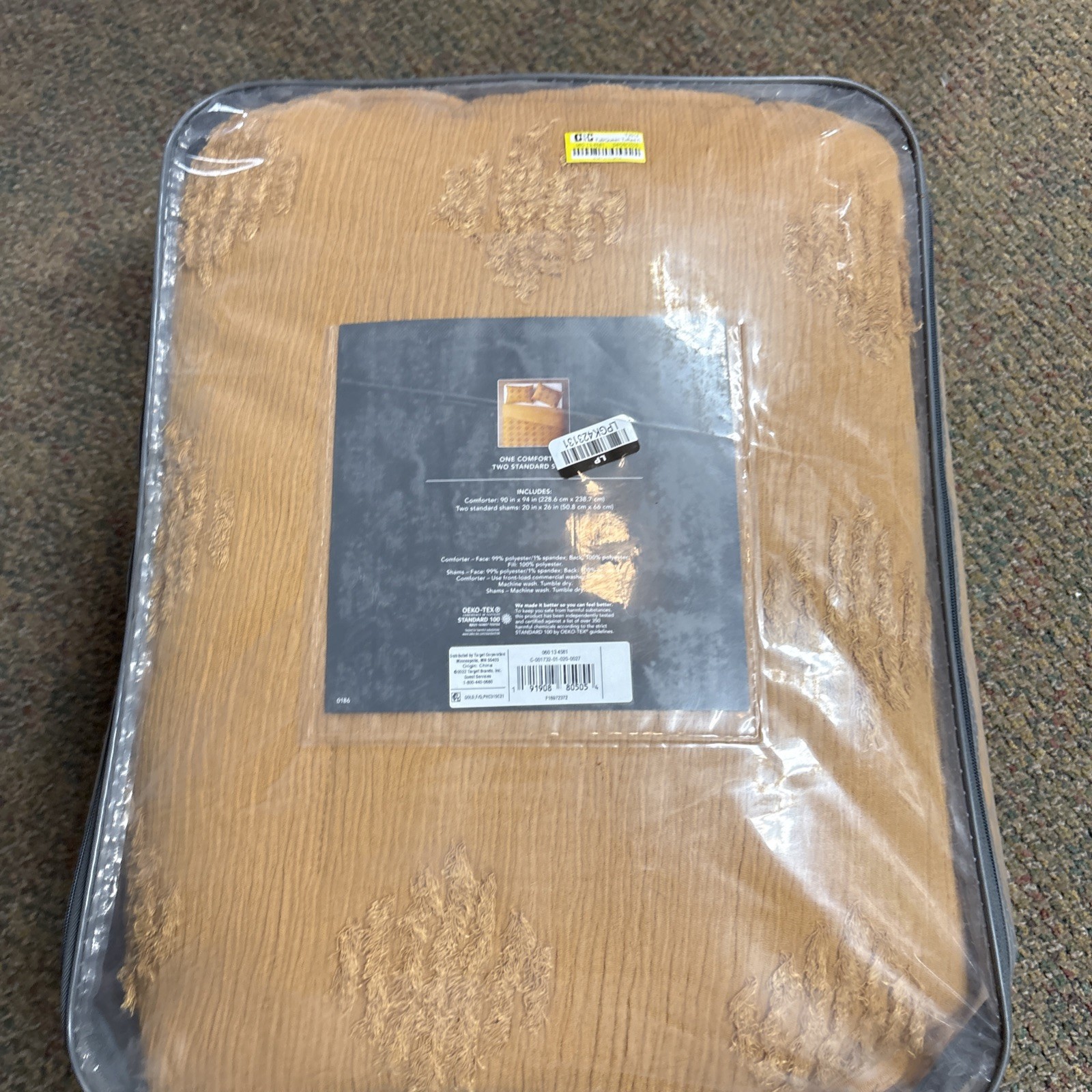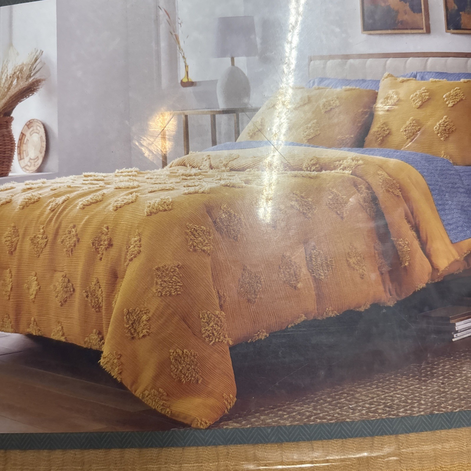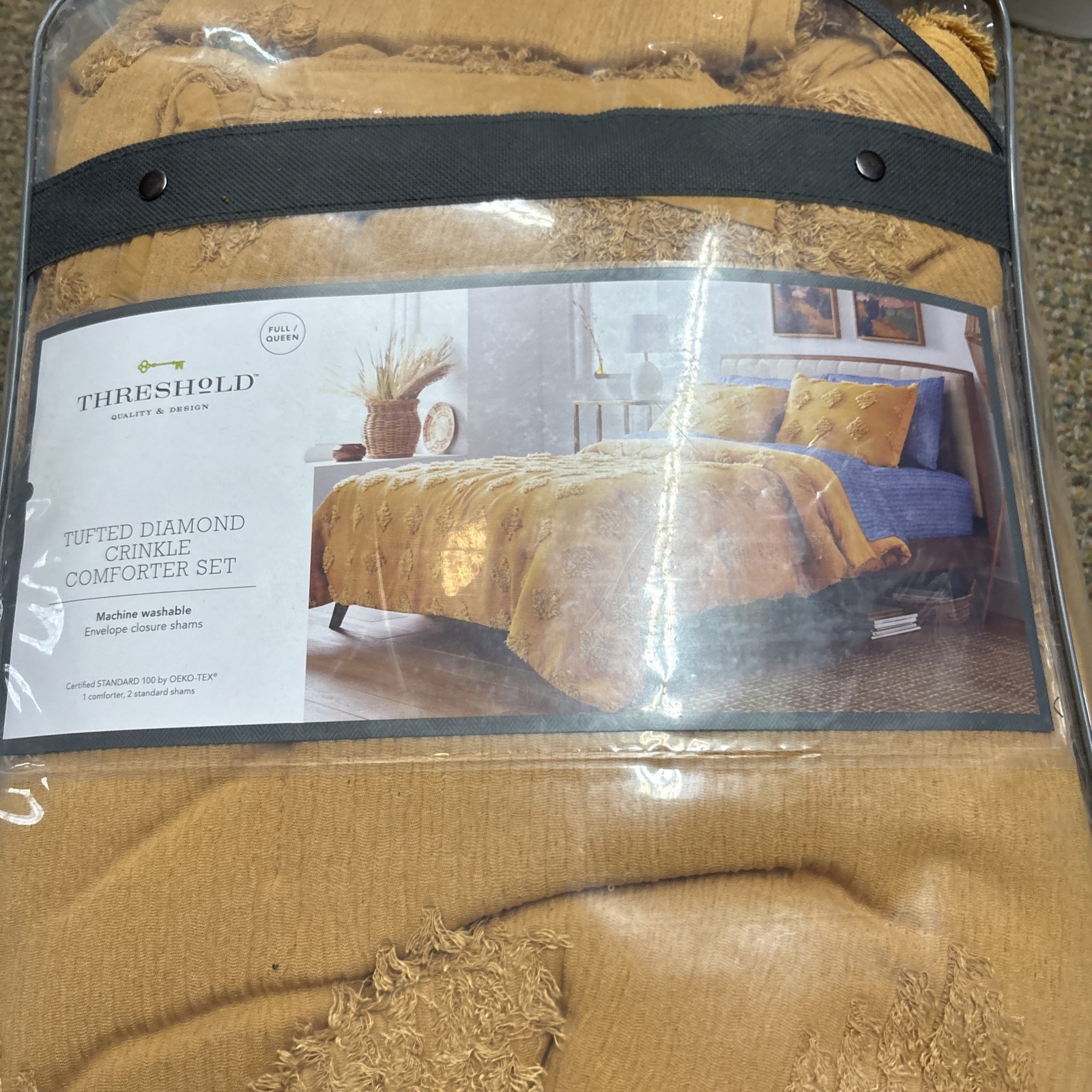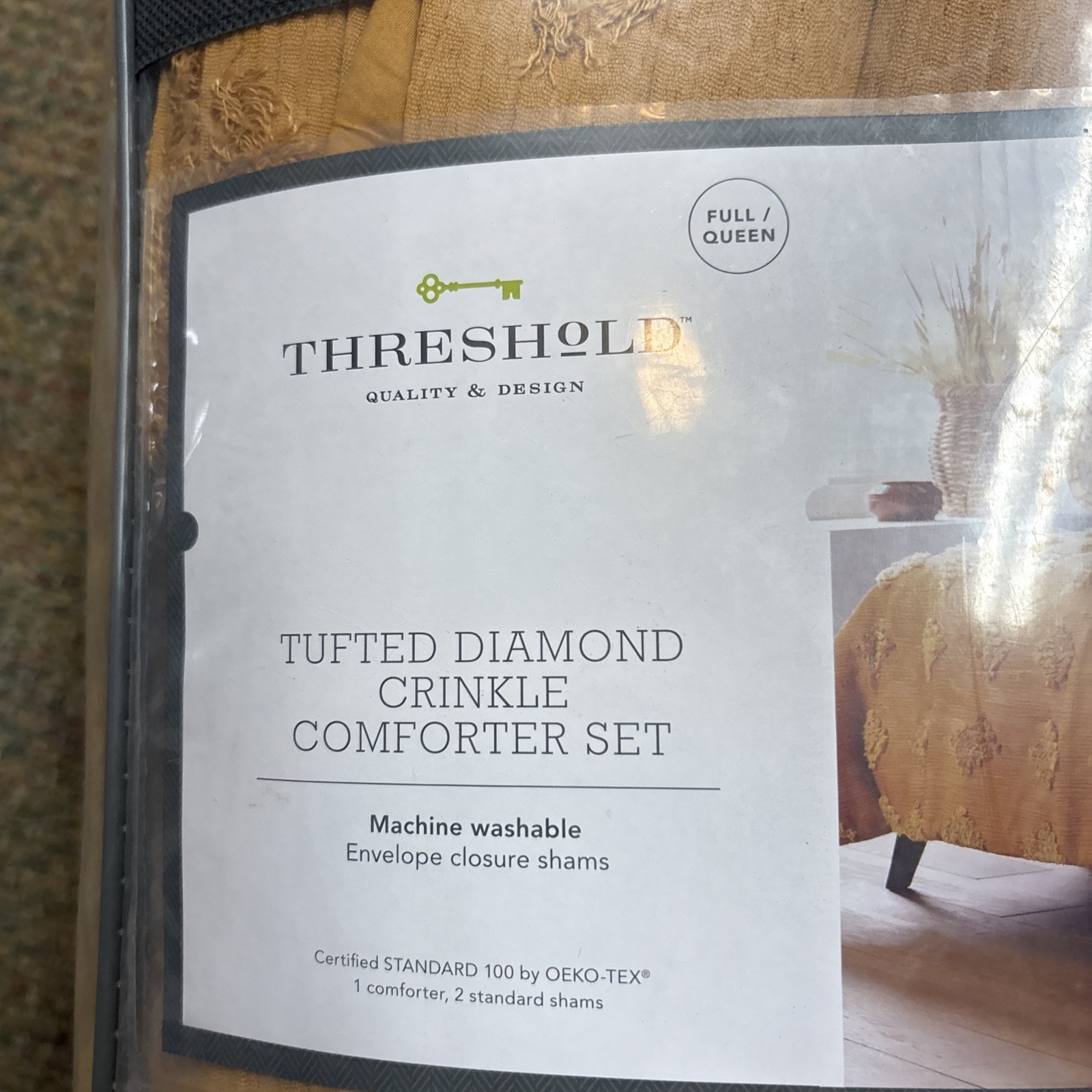 как выглядит Threshold Full/queen Tufted Diamond Crinkle Comforter Set Machine Wash Mustard фото