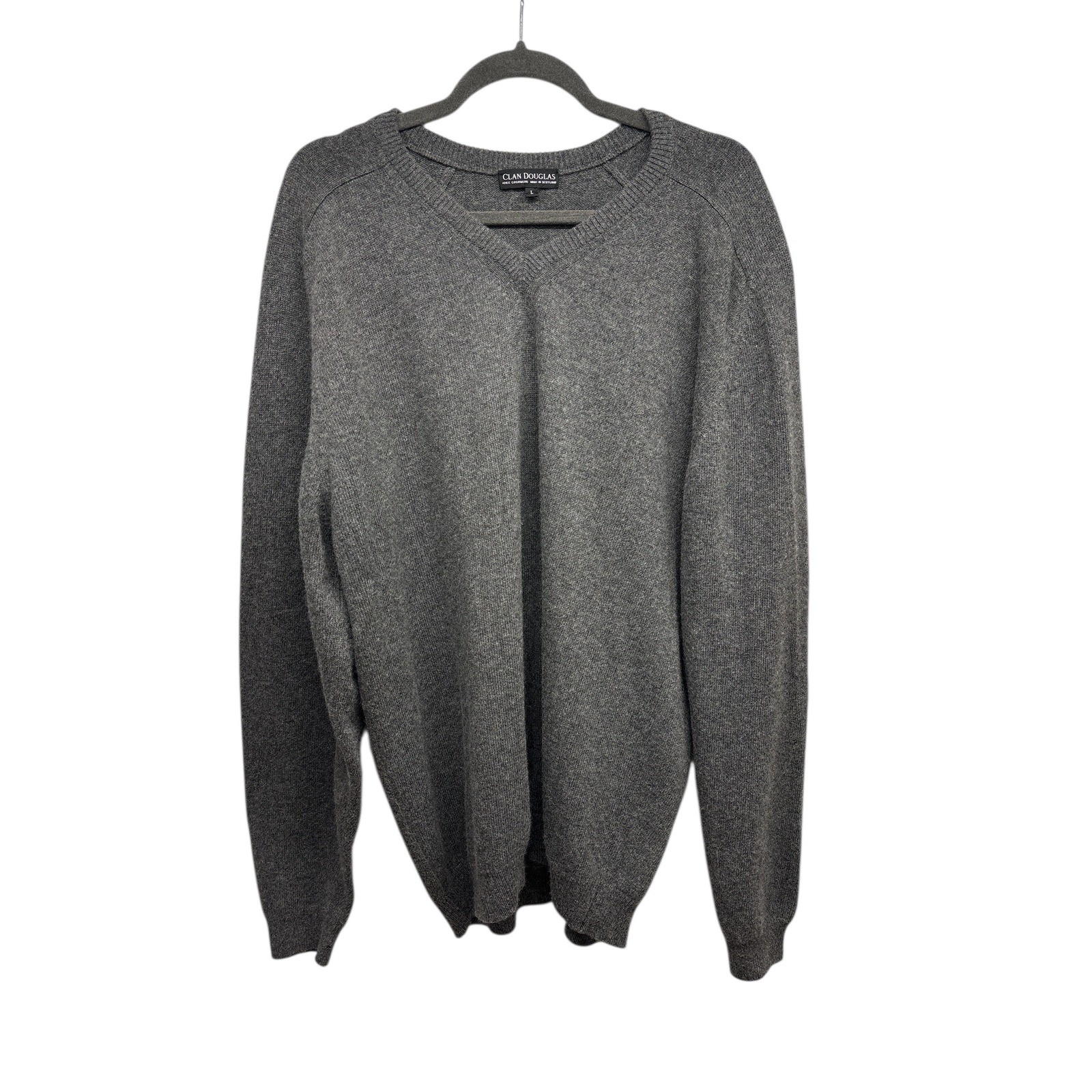 Clan Douglas Men's V-Neck Pure Cashmere Sweater Size L Gray Made in Scotland