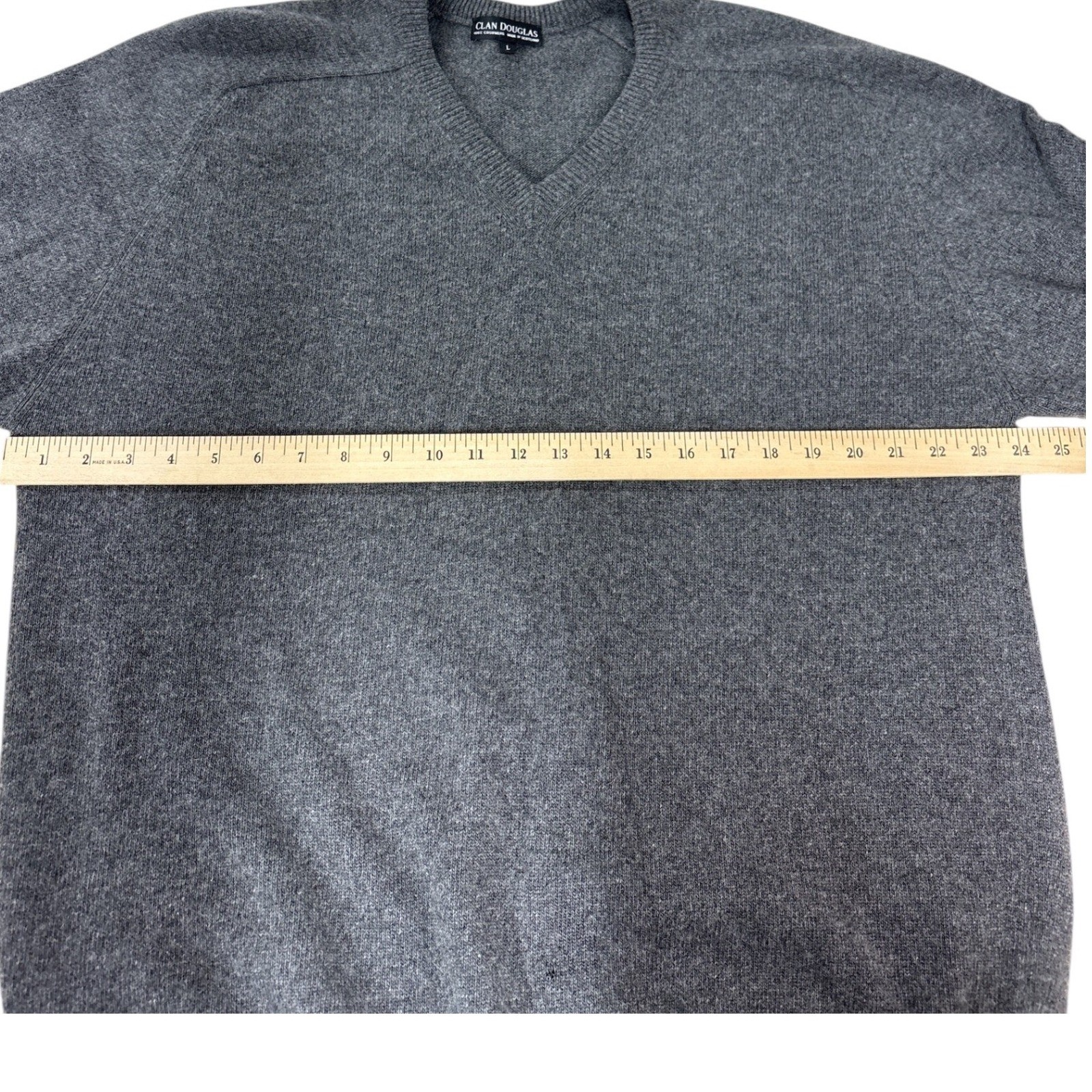 как выглядит Clan Douglas Mens V-Neck Pure Cashmere Sweater Size L Gray Made in Scotland фото