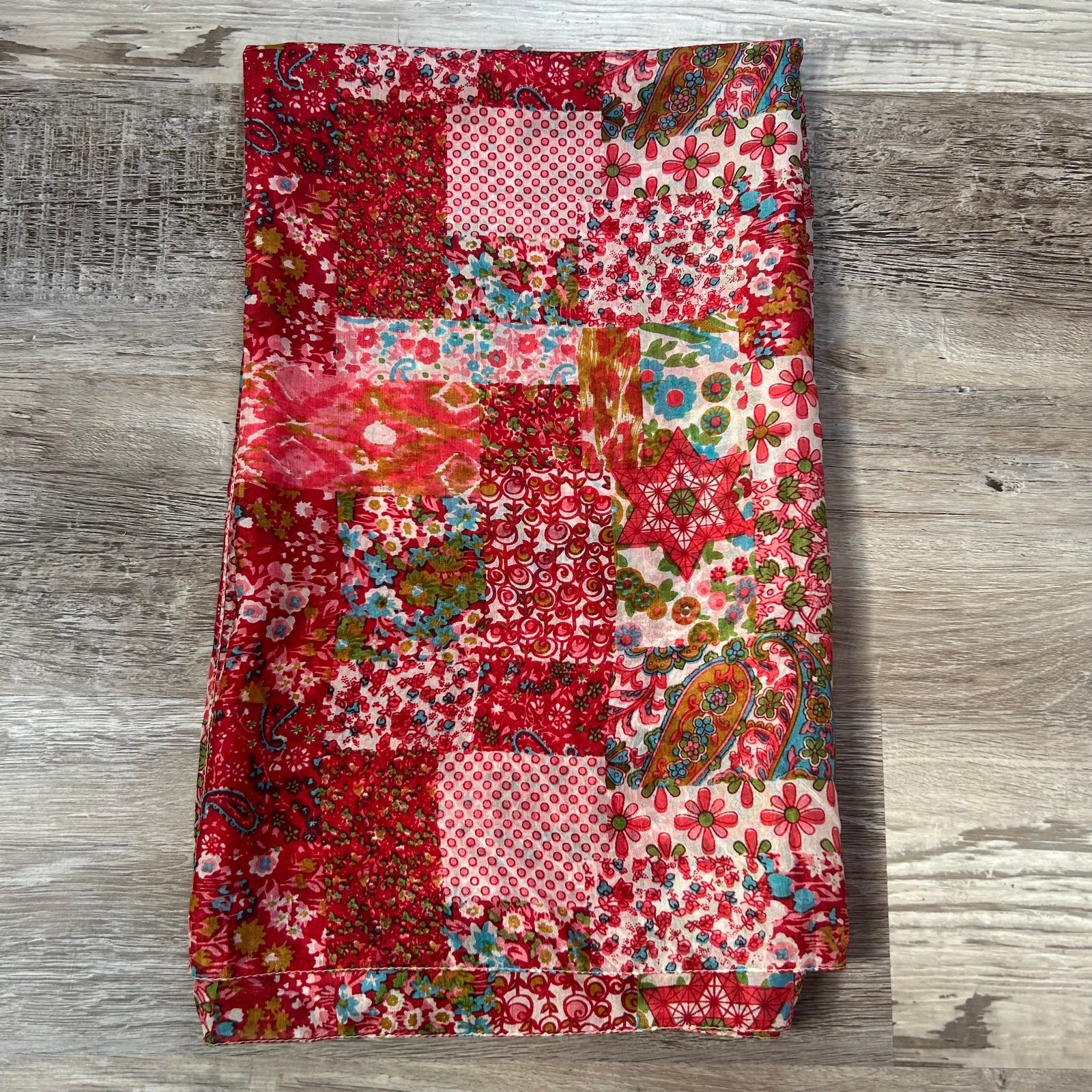 Vintage Colores de Oto o Silk Patchwork Scarf Floral Paisley Red Boho 40x70