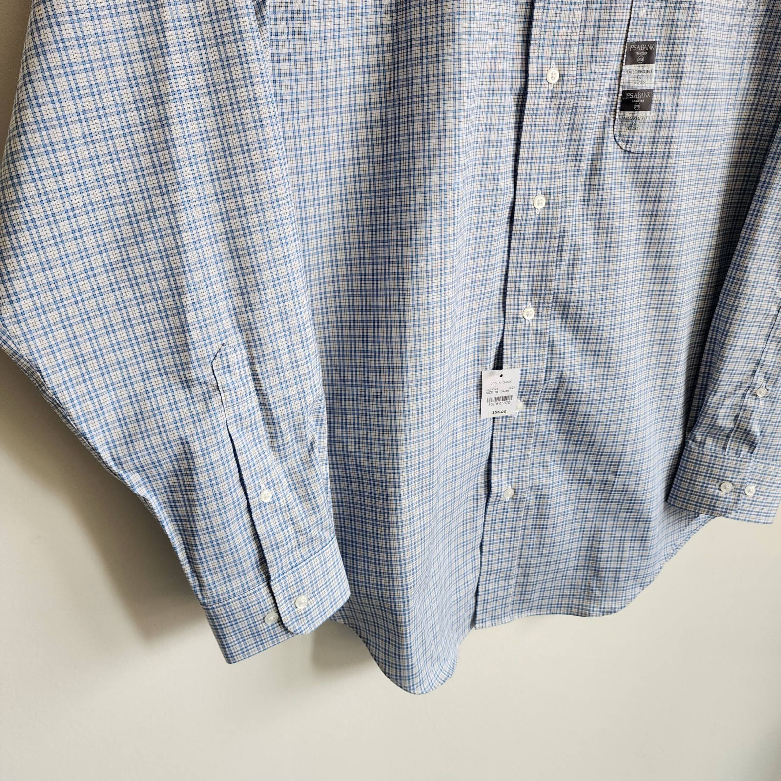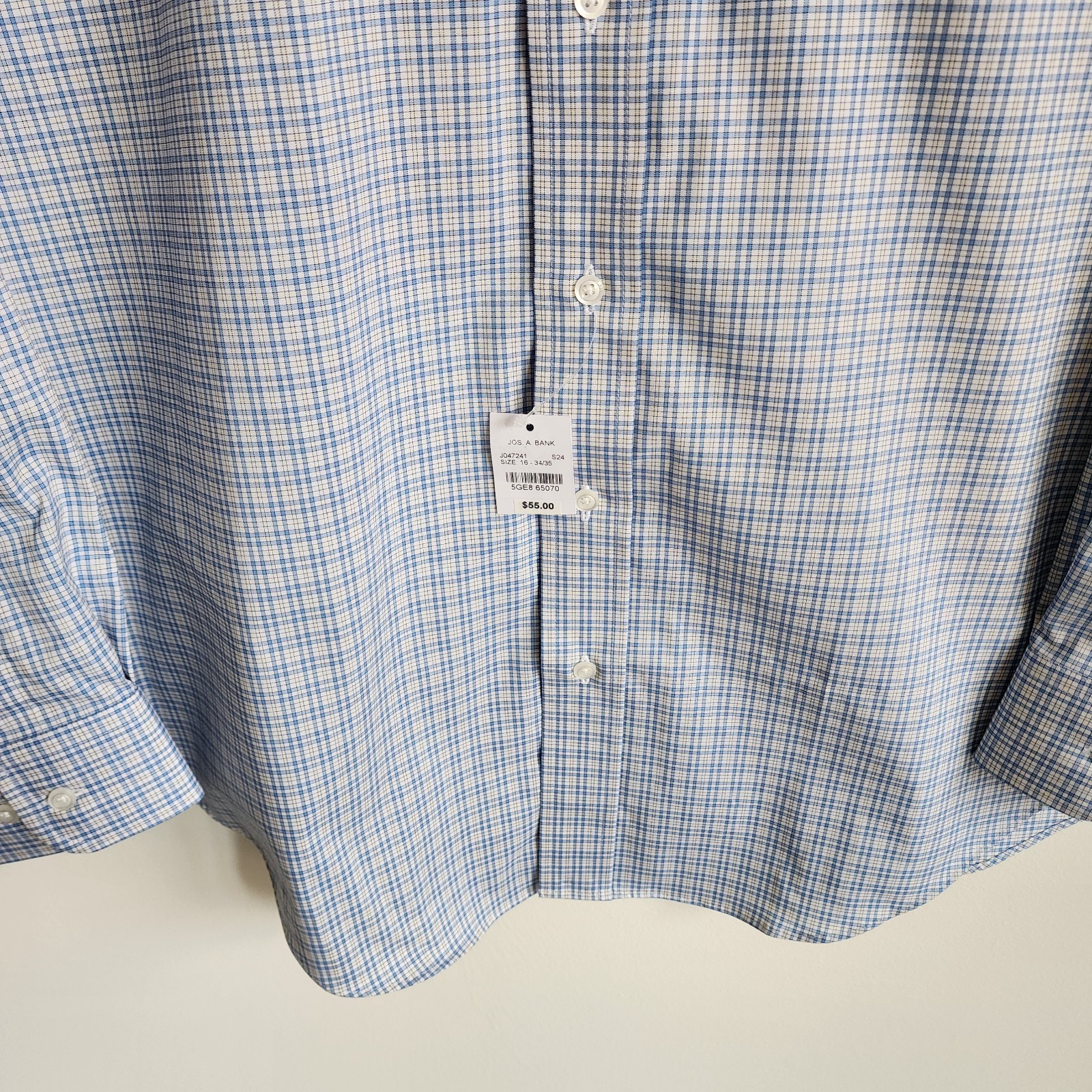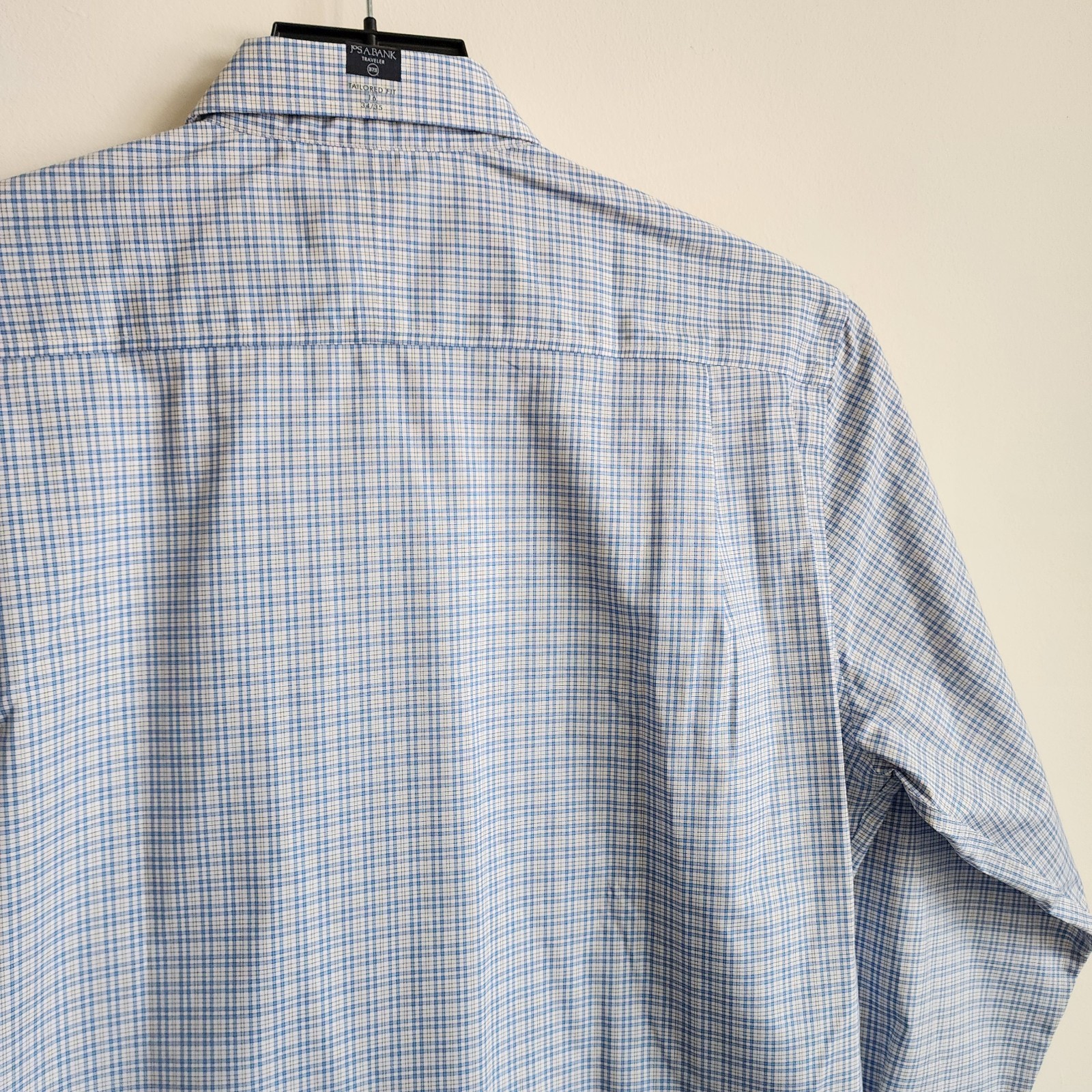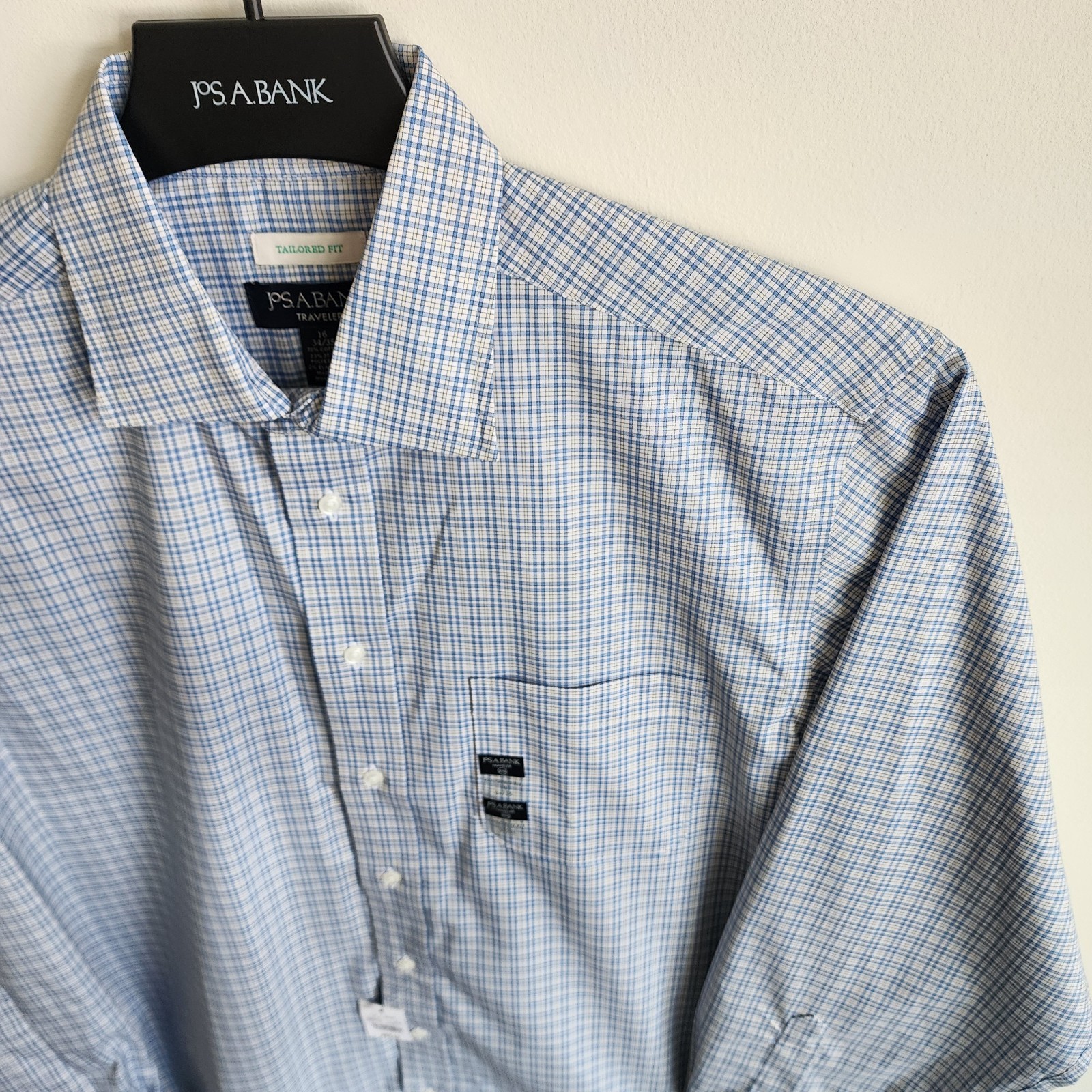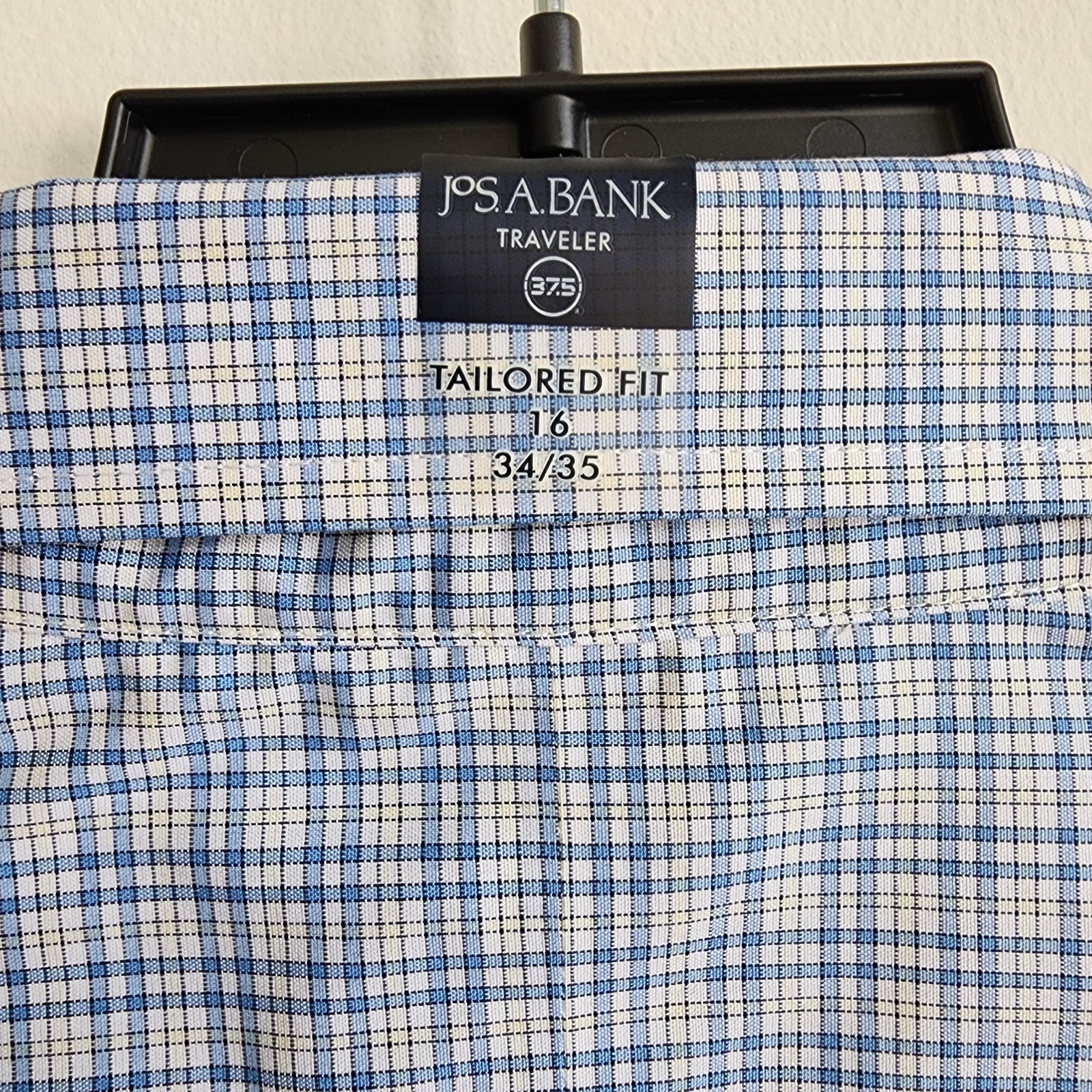16 34/35 Blue Dress Shirt Jos A Bank Traveler New Yellow Check Tailored Fit Sz