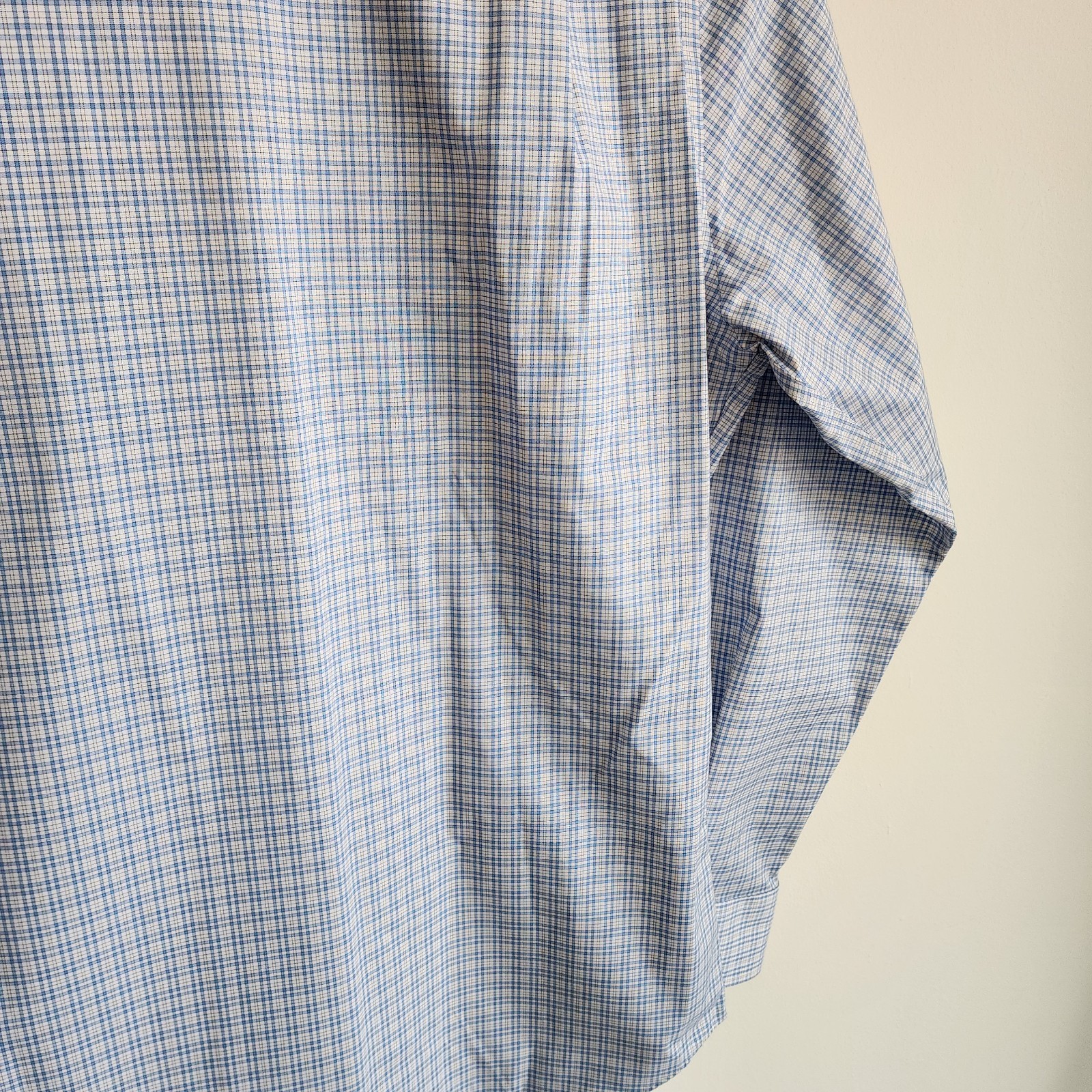как выглядит 16 34/35 Blue Dress Shirt Jos A Bank Traveler New Yellow Check Tailored Fit Sz фото