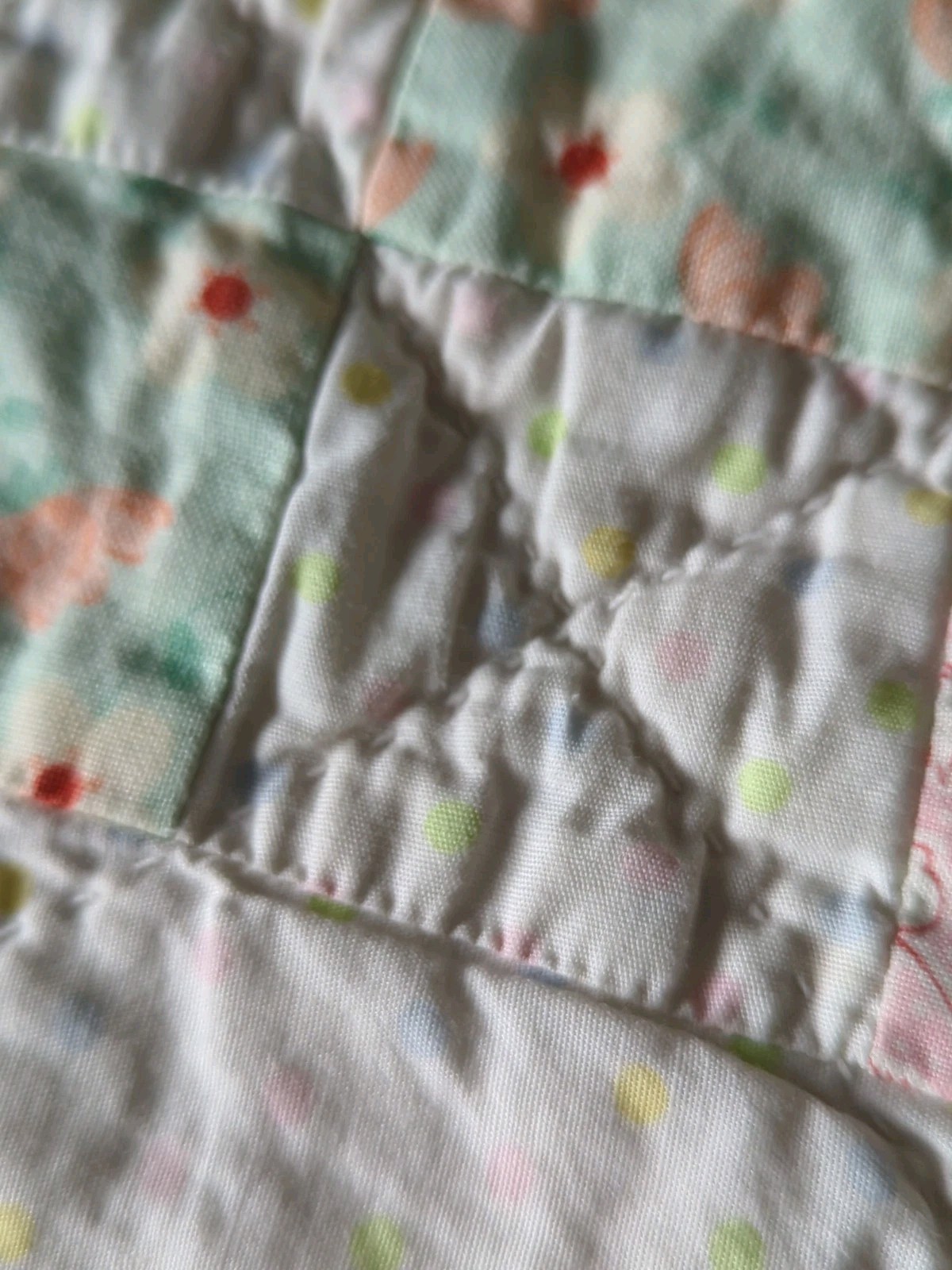 как выглядит VTG Hand Quilted Baby Blanket Scalloped Edge Patchwork Front Yellow Flannel Back фото
