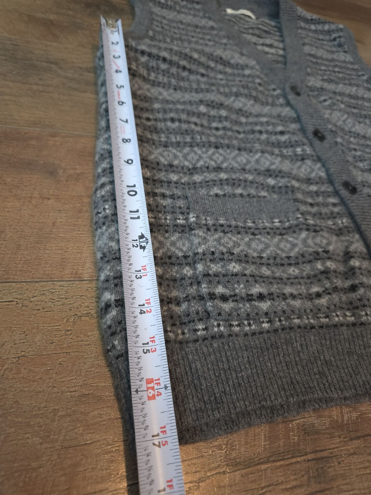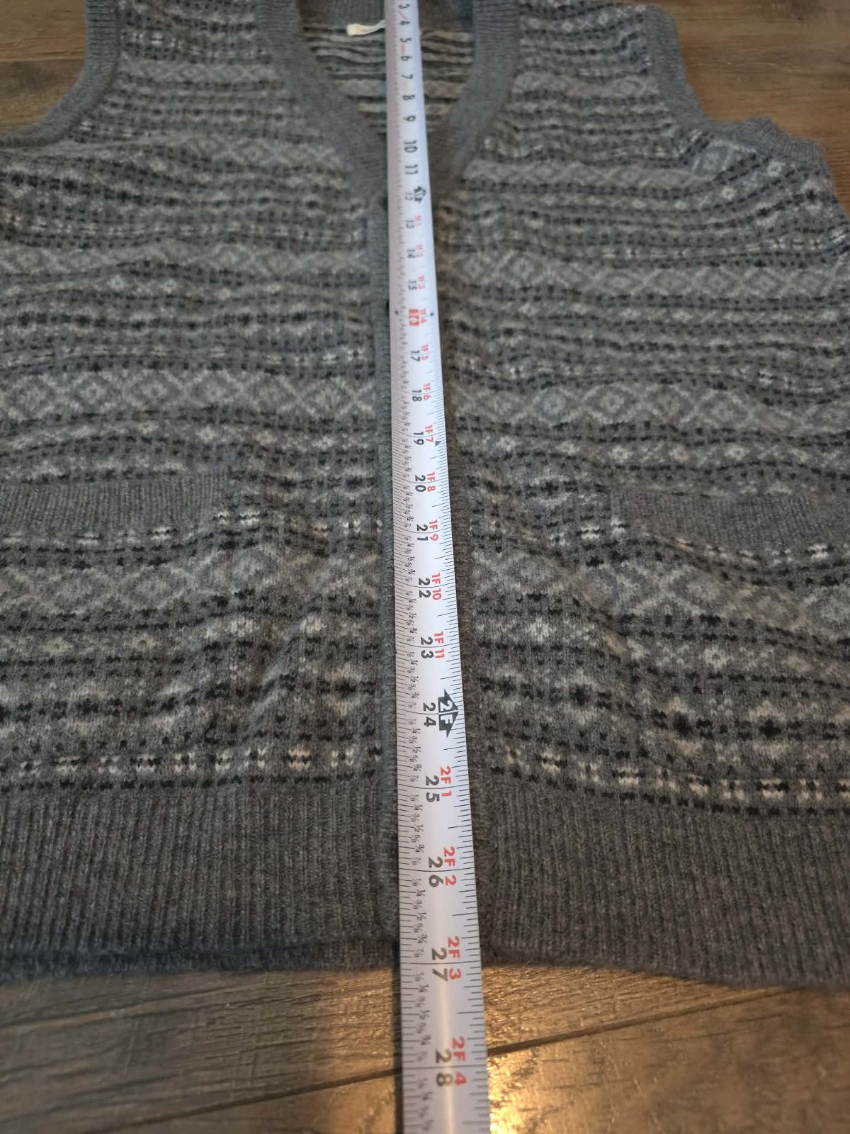 как выглядит Woolovers Men s Large Lambswool Button-Up Sweater Vest Gray/Black/White EUC фото