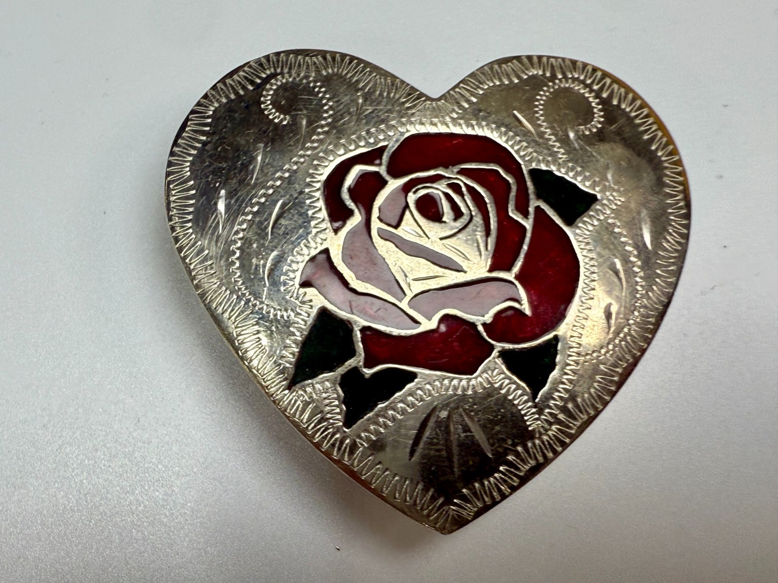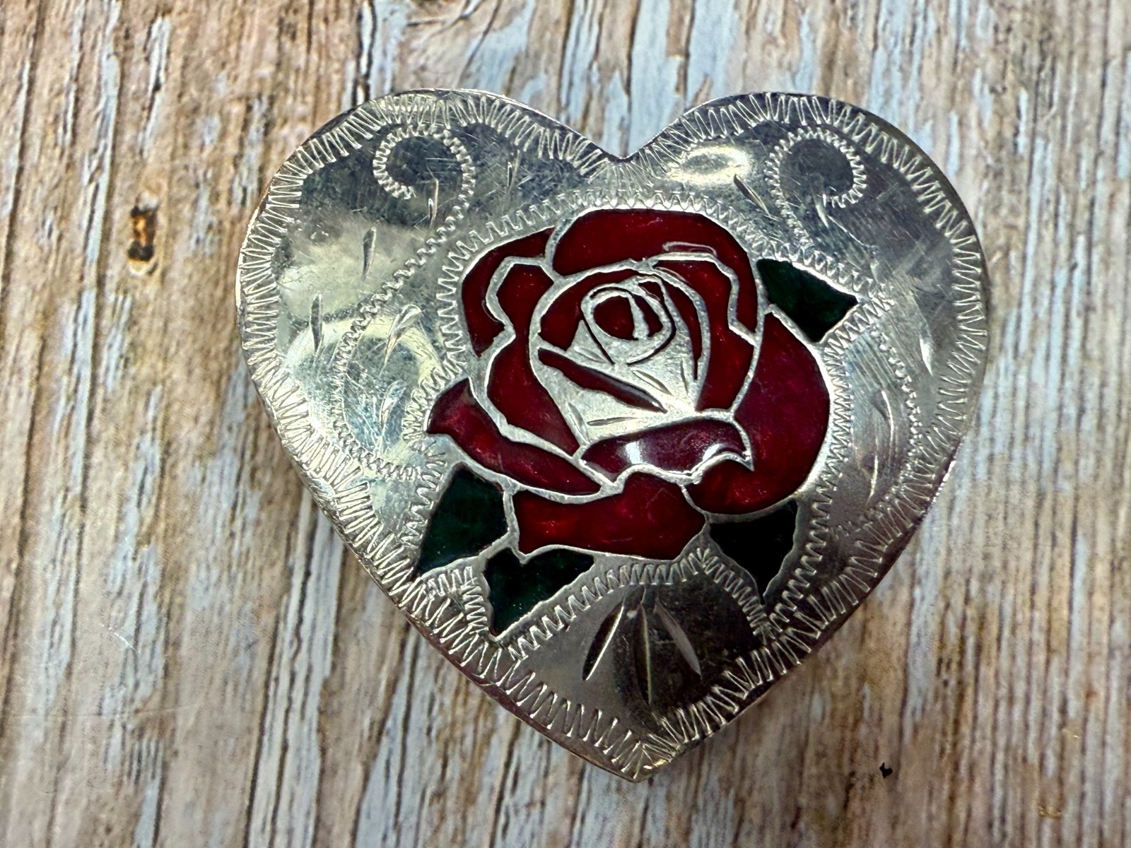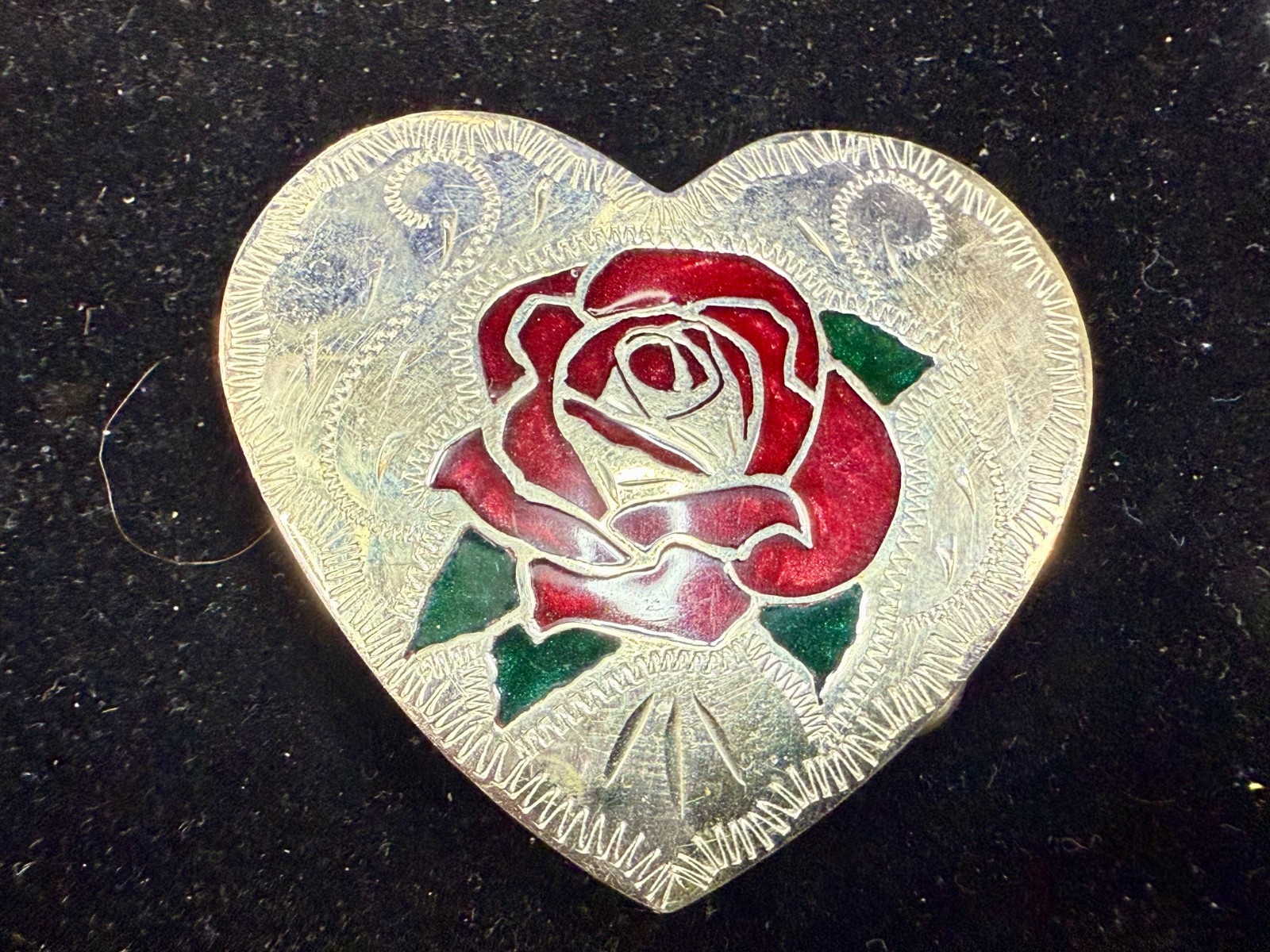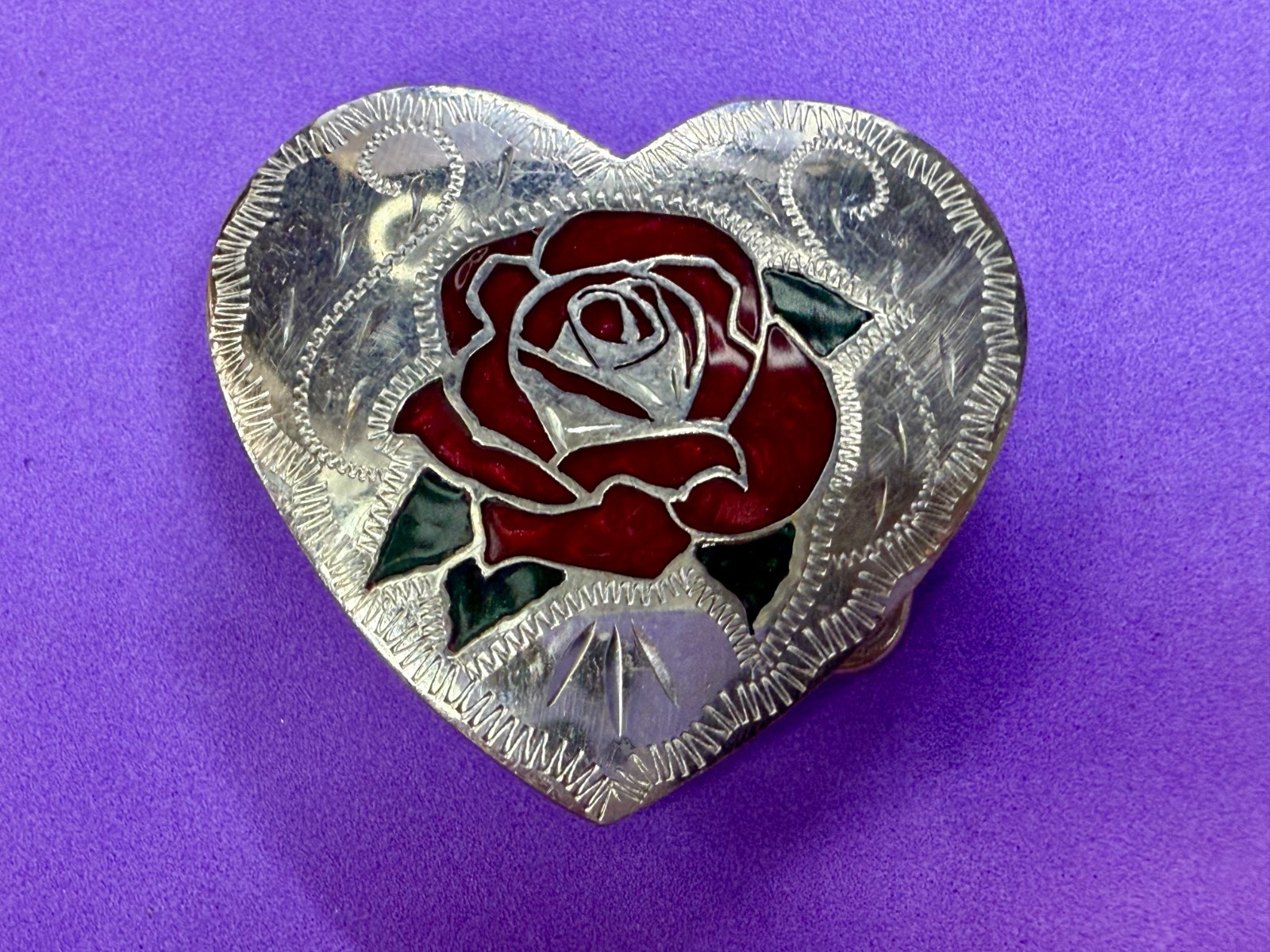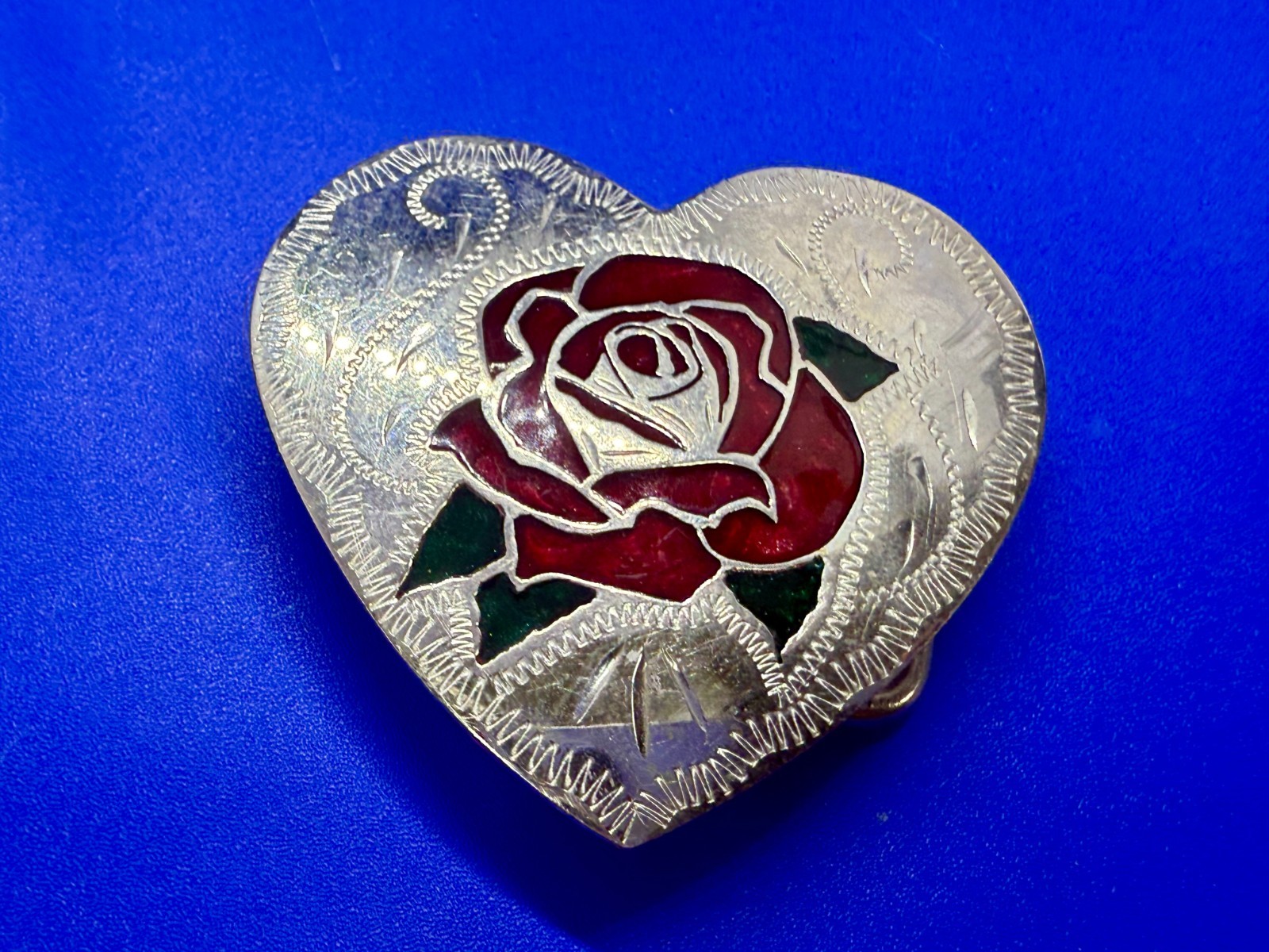 • Western Heart Shaped Red Rose Flower Johnson Held Belt Buckle for 1.25" Belt