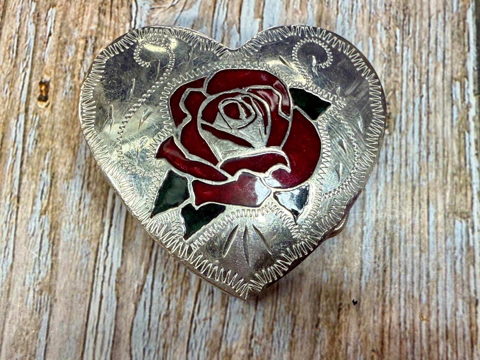 Western Heart Shaped Red Rose Flower Johnson Held Belt Buckle for 1.25" Belt