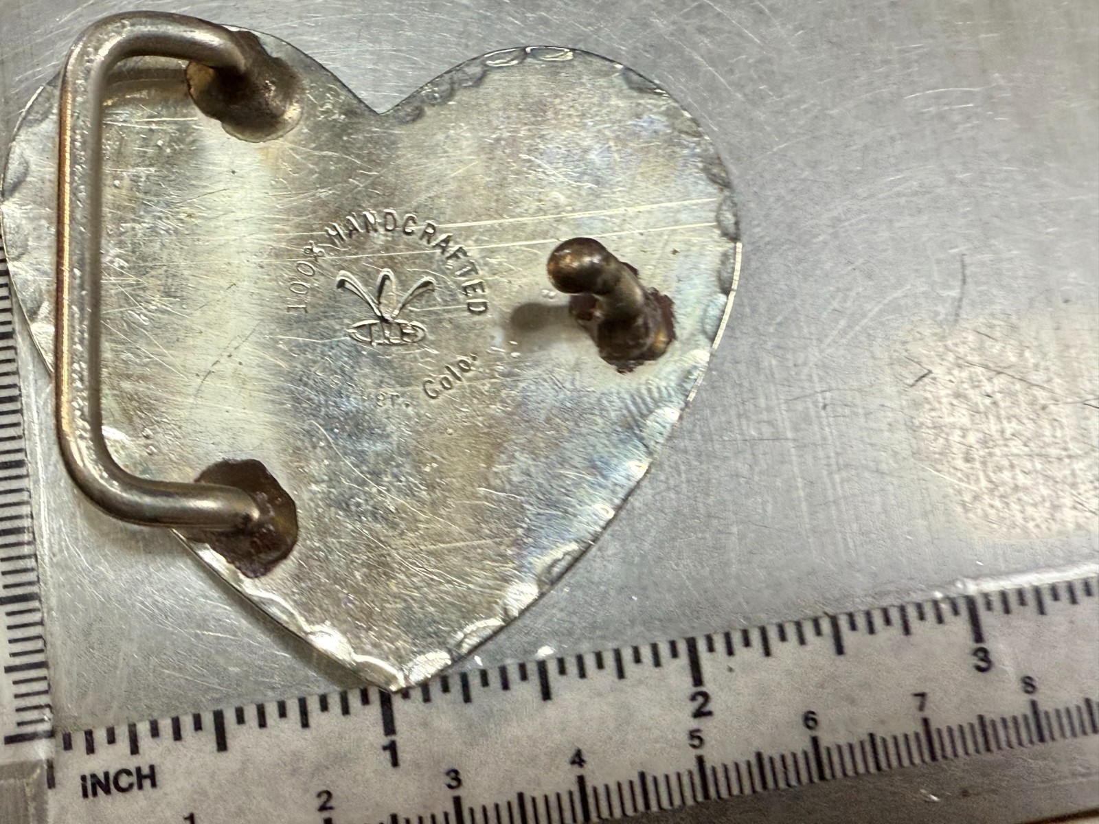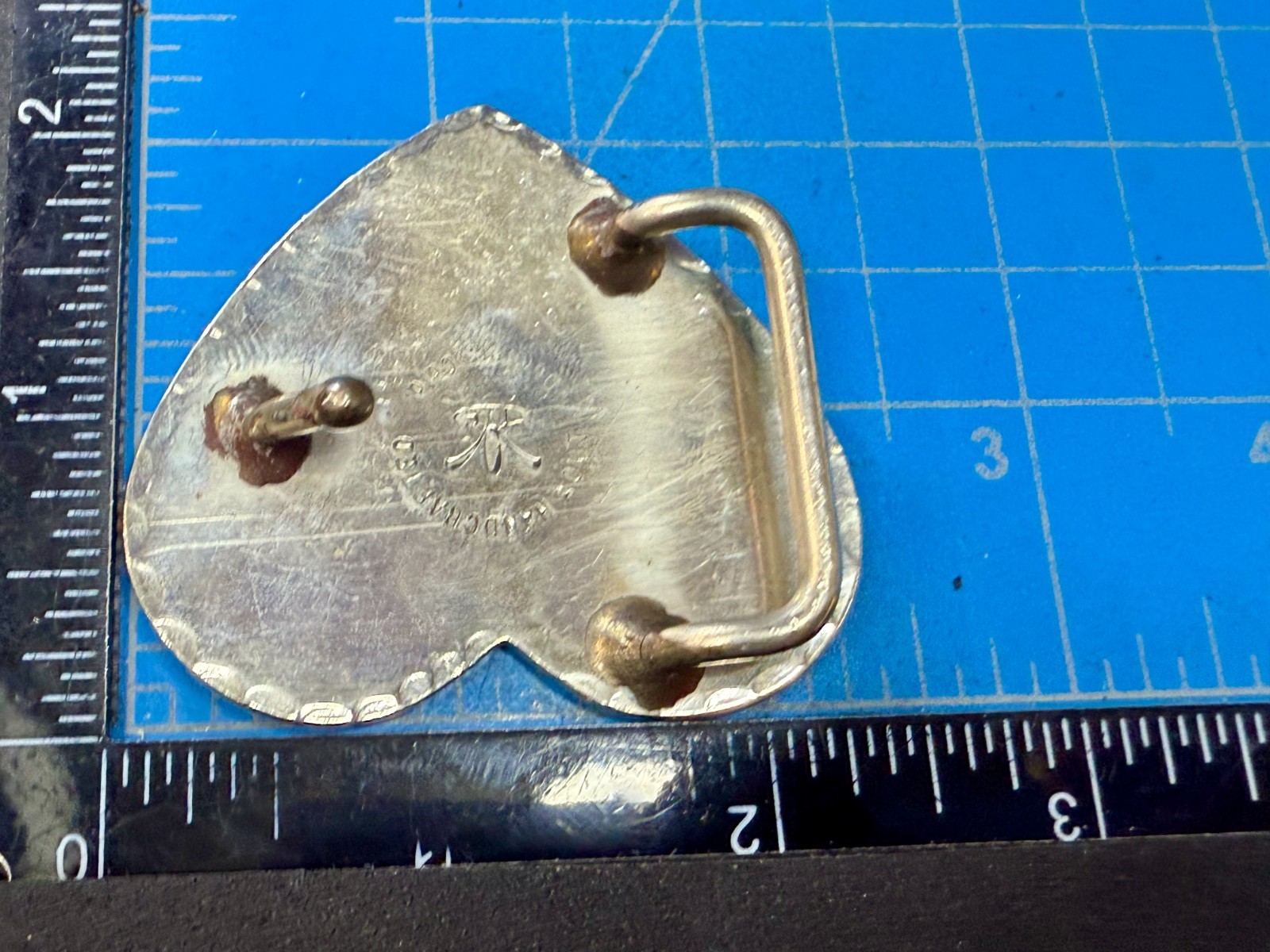 Western Heart Shaped Red Rose Flower Johnson Held Belt Buckle for 1.25 Belt