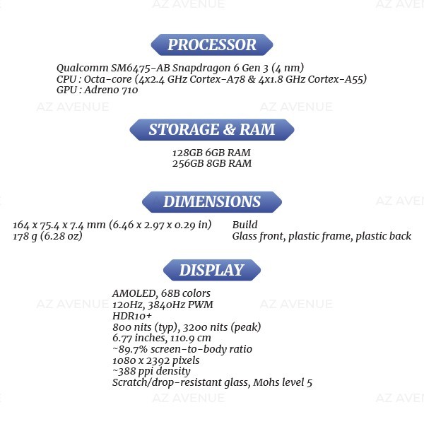 Chipset Model: Qualcomm SM6475-AB Snapdragon 6 Gen 3 (4 nm)