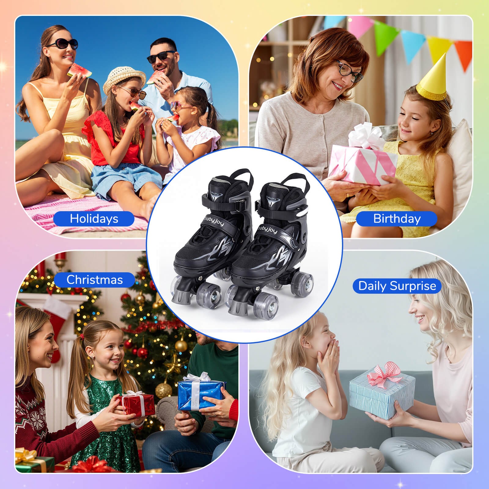 Kids Roller Skates 4 Sizes Adjustable Quad Skates w/Light-up Wheels for Ages 7-9