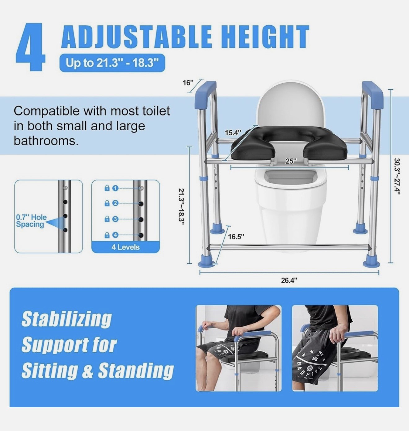 MedHelp Raised Toilet Seat with Handles - Padded Toilet Seat Riser for Seniors