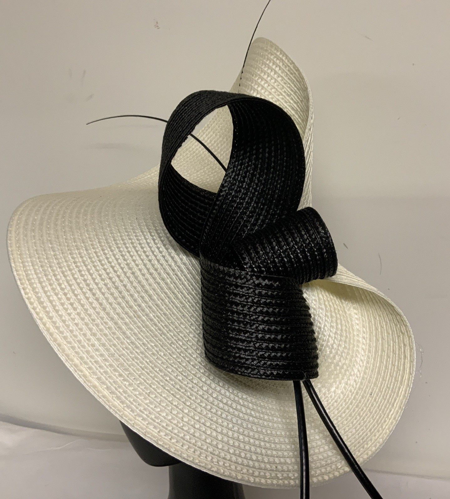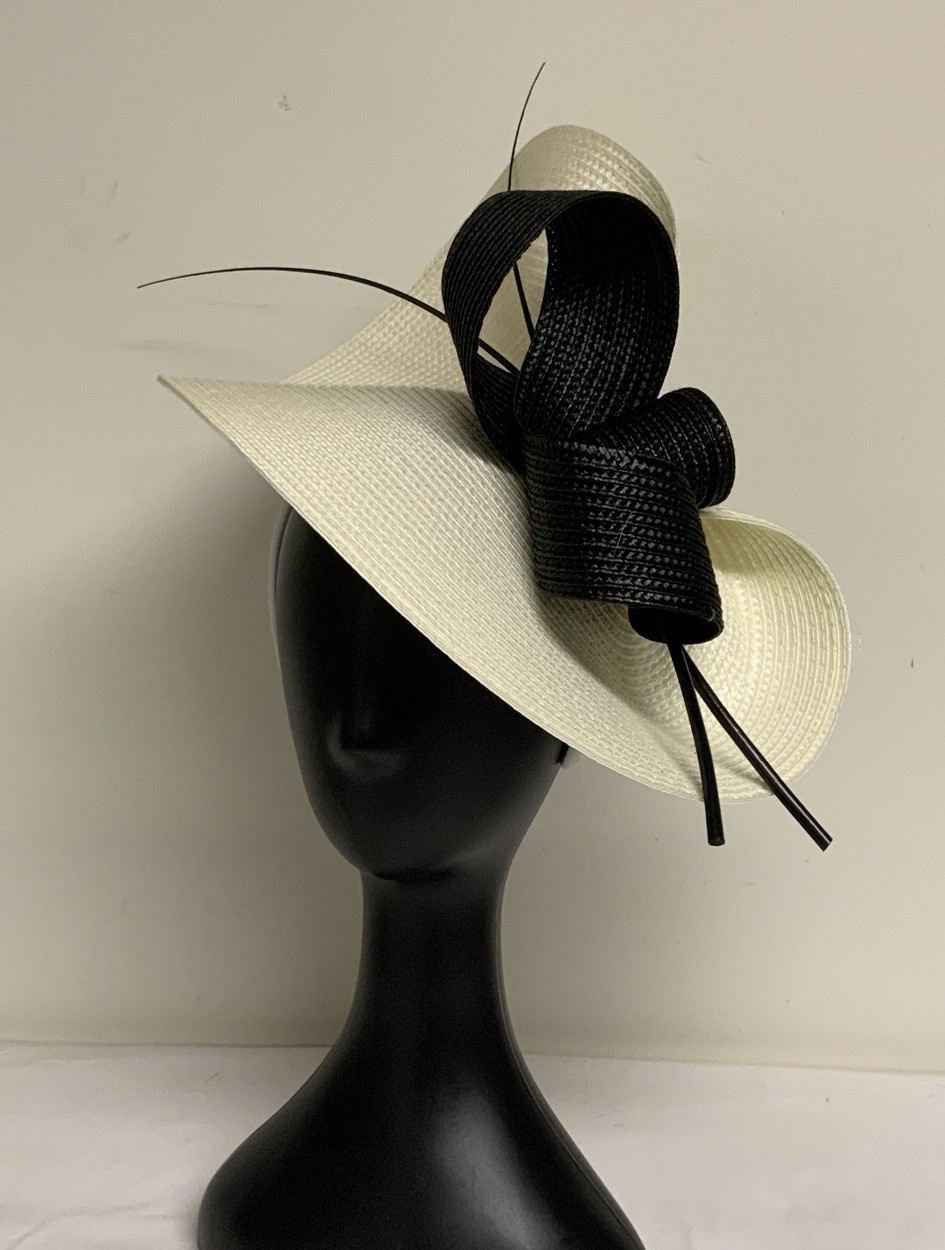 Ascot Royal Fascinator Kentucky Derby Ivory/Black Straw Texture, Headband