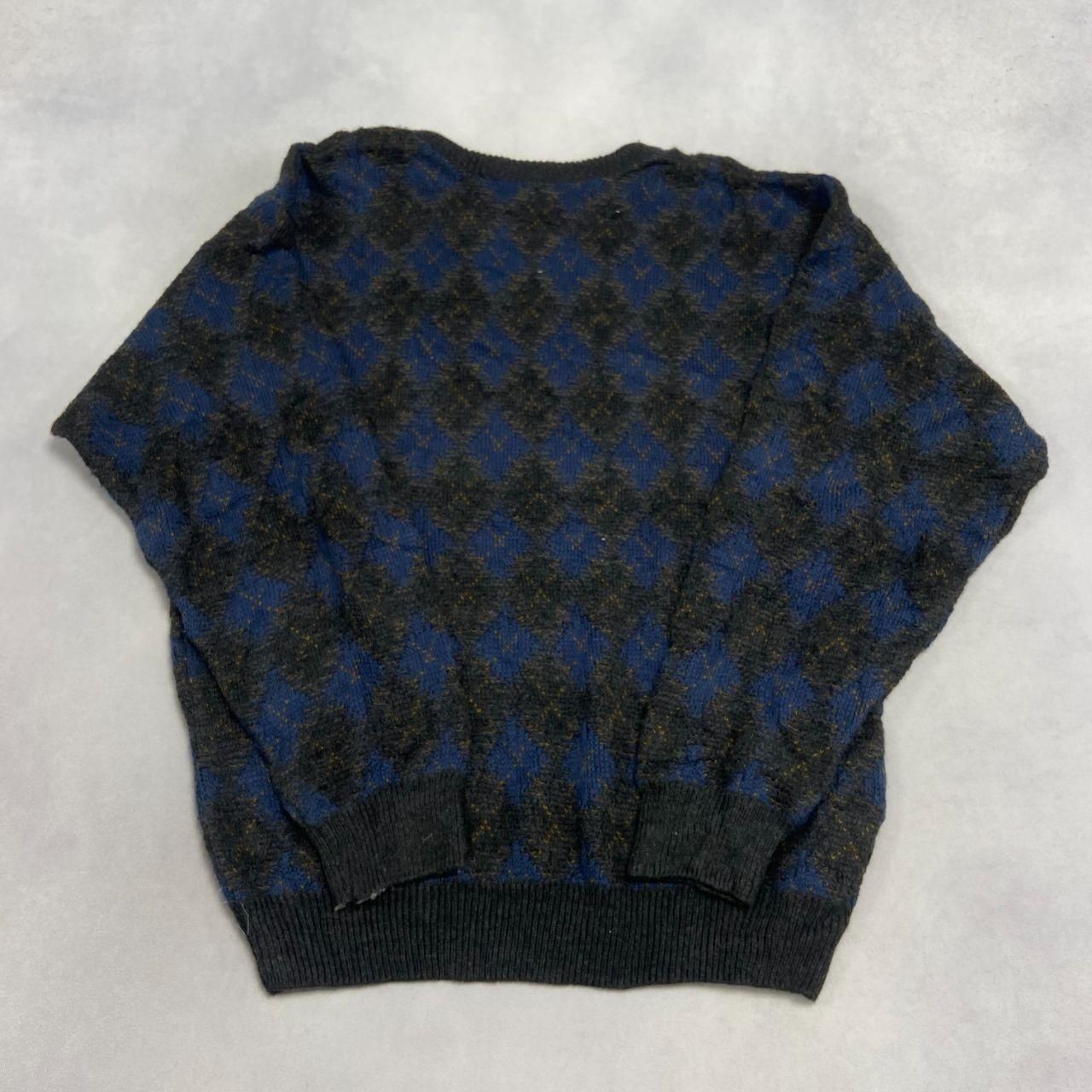 как выглядит Vintage Abstract Knitted Jumper Argyle Patterned Grandad Knit Sweater Mens Xl фото