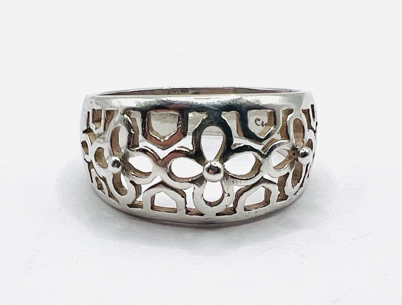 Vintage 925 Sterling Silver Ornate Filigree Floral Statement Ring Size 7