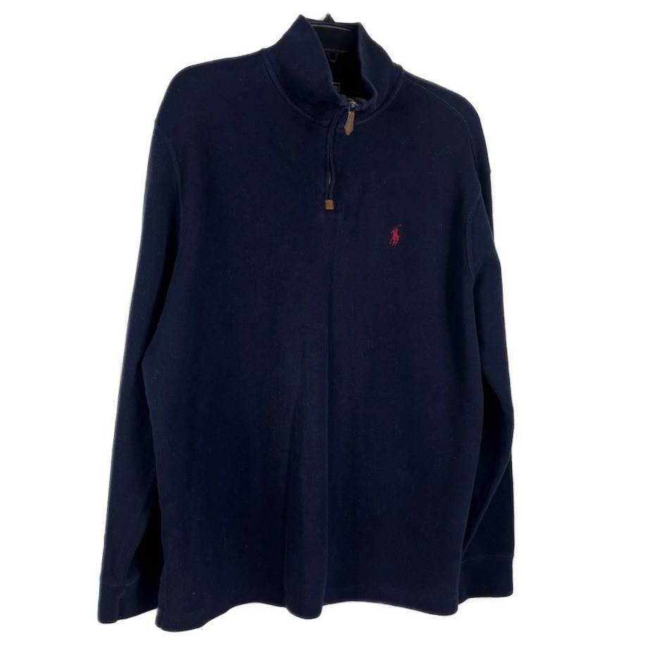 Polo Ralph Lauren Mens Size XL Navy Blue Quarter Zip Top Sweater Red Pony Fleece
