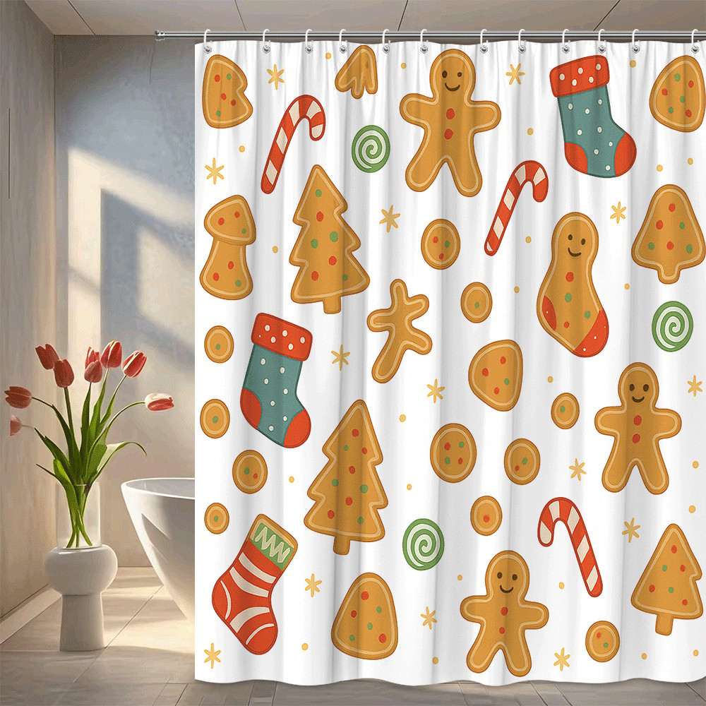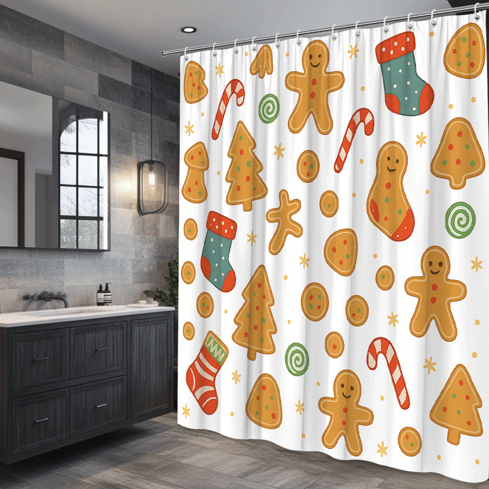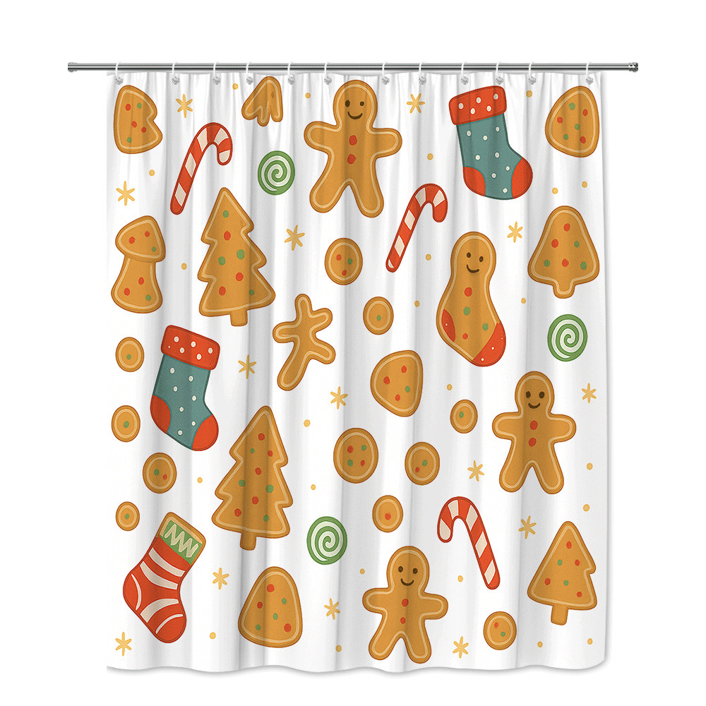 как выглядит Cute Christmas Shower Curtain with Gingerbread Design фото