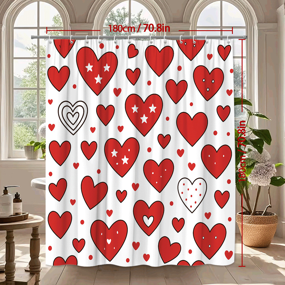 Fun Red Heart Shower Curtain for Kids and Valentine's Day