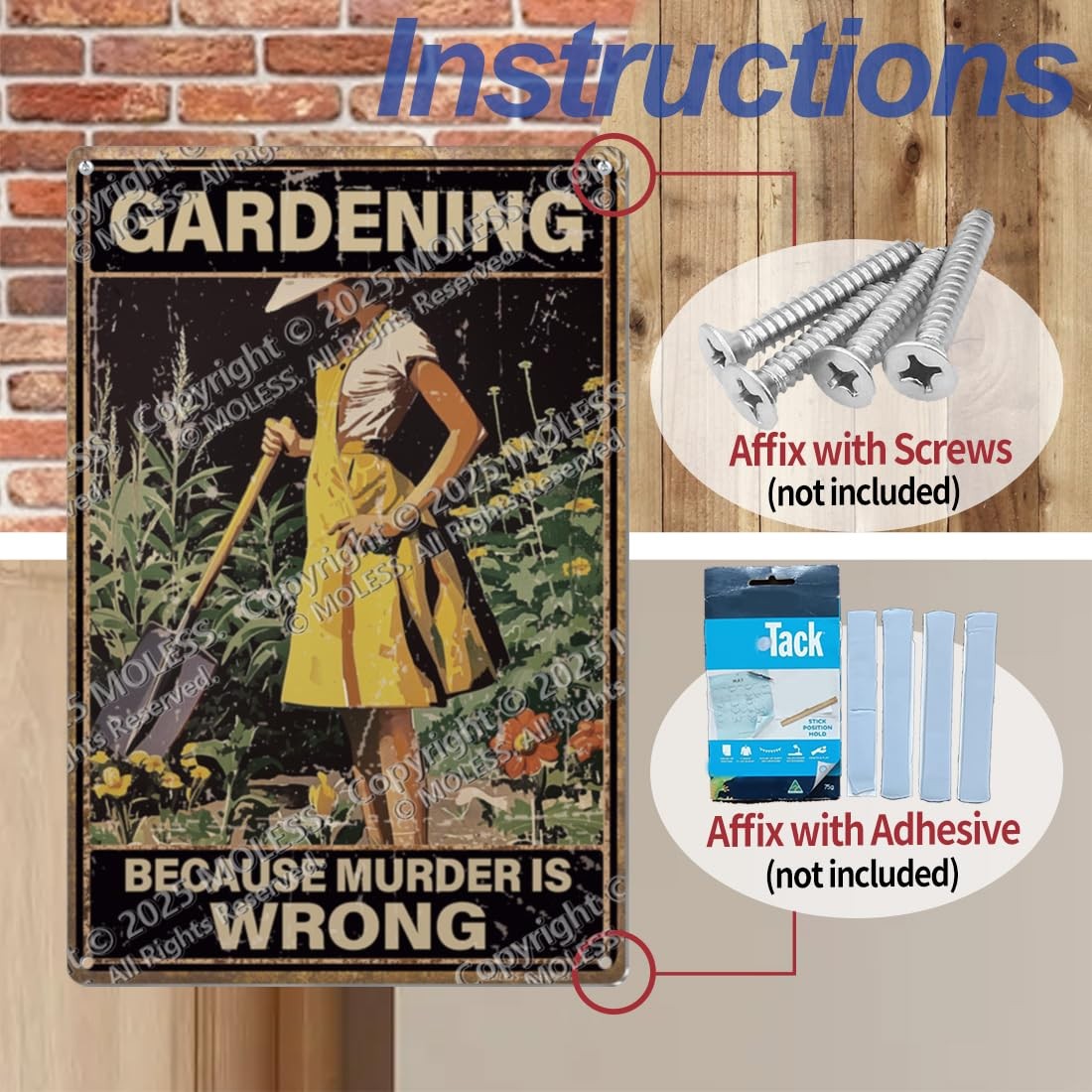 как выглядит Funny Garden Sign  Gardening Because Murder Is Wrong 12x8 Vintage Metal S... фото