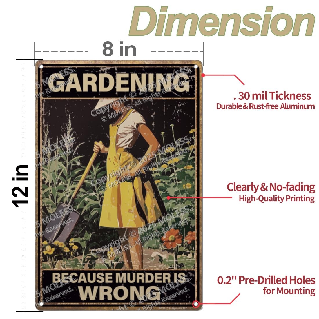 Funny Garden Sign Gardening Because Murder Is Wrong 12x8 Vintage Metal S...