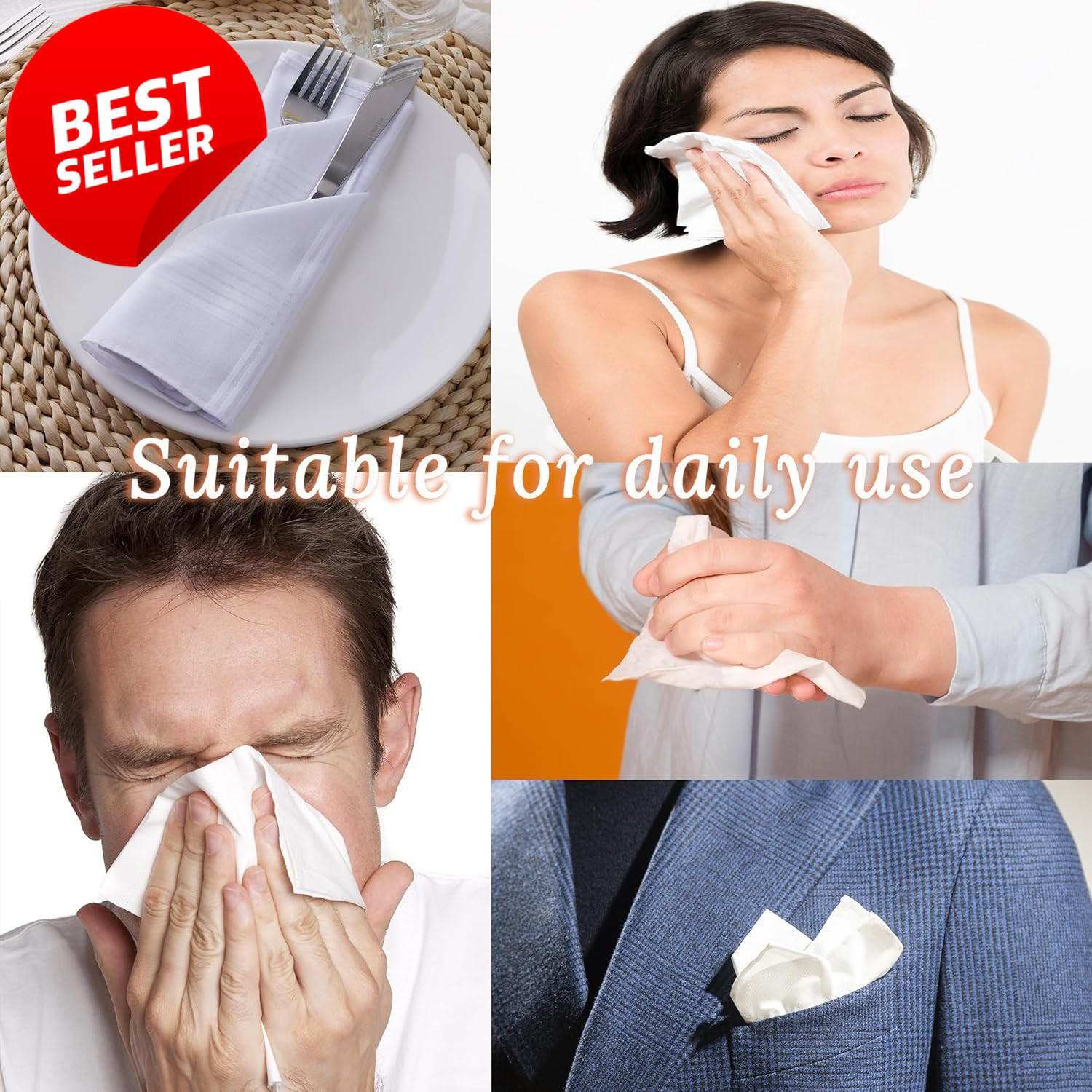 Men's Handkerchiefs 100 Pure Cotton Soft White Classic Hankies 6 Pack - US