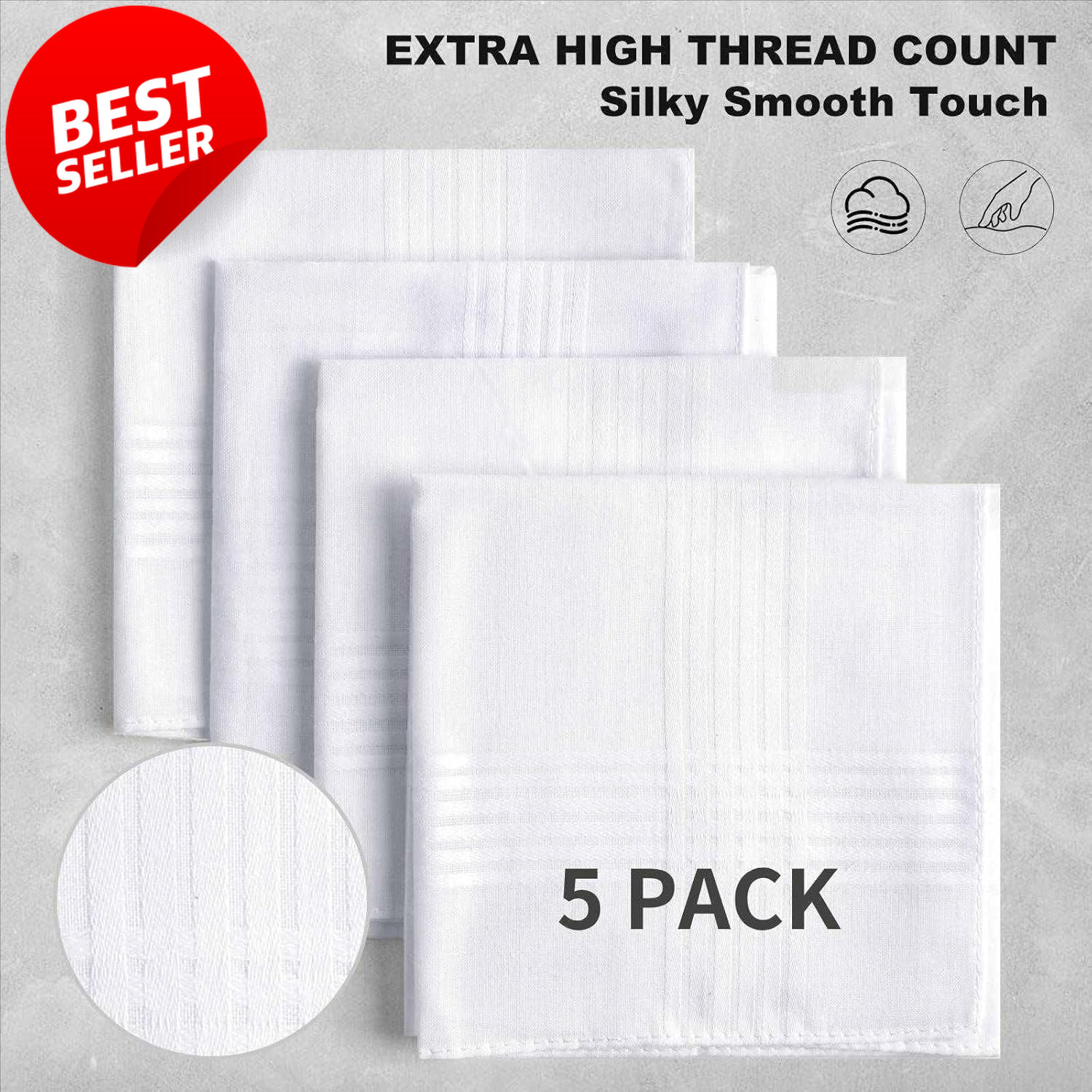 5 Pack Men's Handkerchiefs 100 Soft Cotton 16x16 White Classic Hankies - US