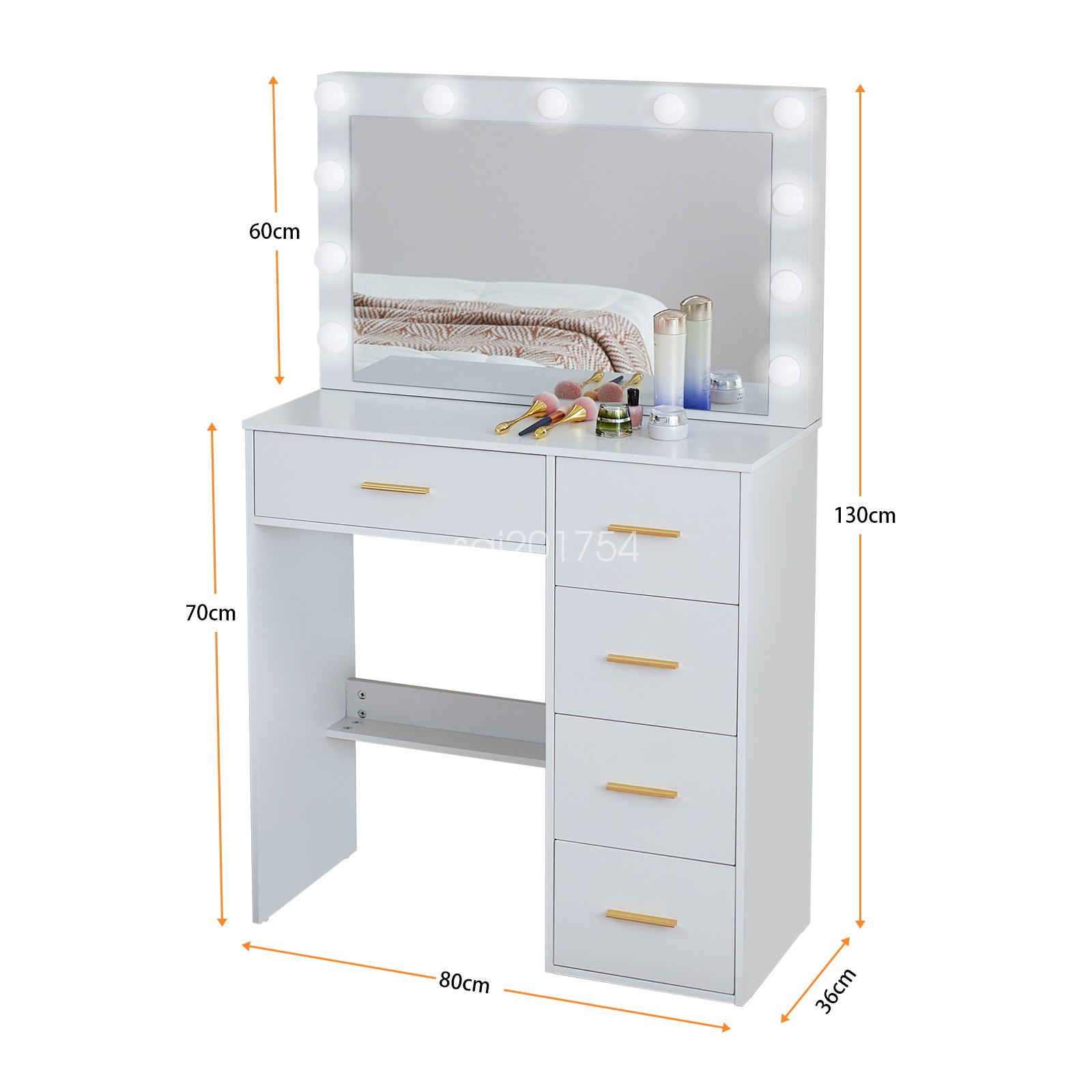 Modern White Vanity Desk Set with 11 LED Lights Mirror, 5 Drawers Dressing Table