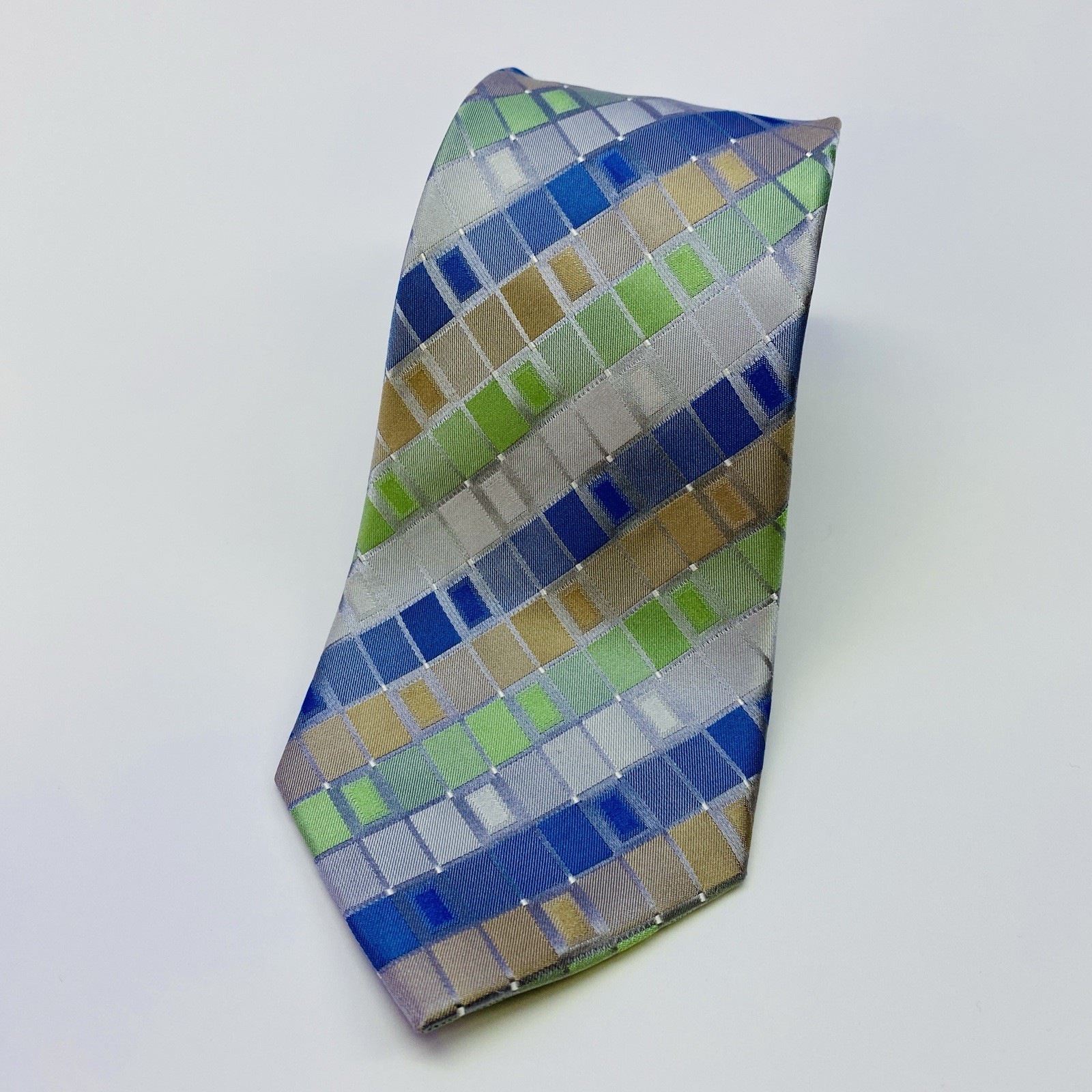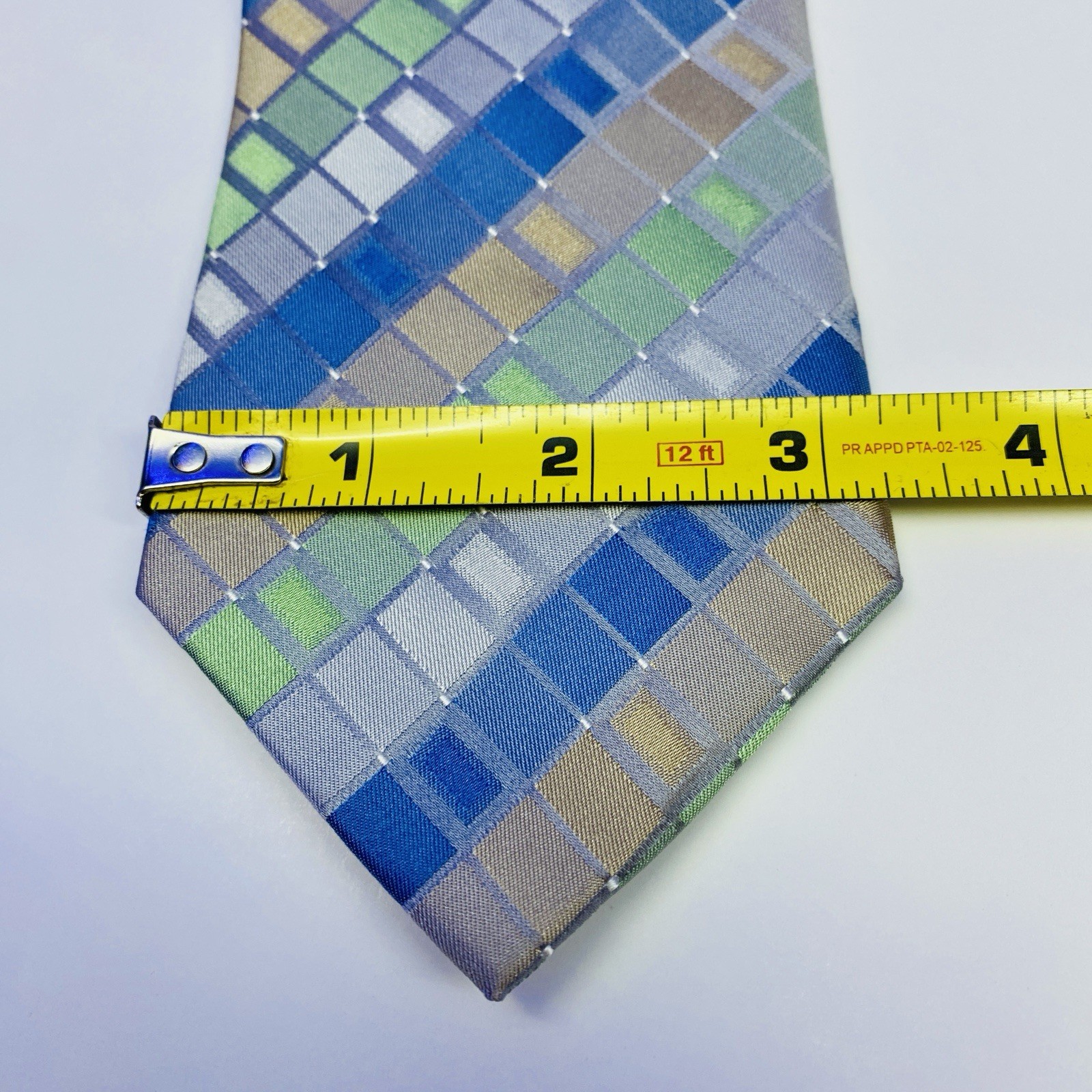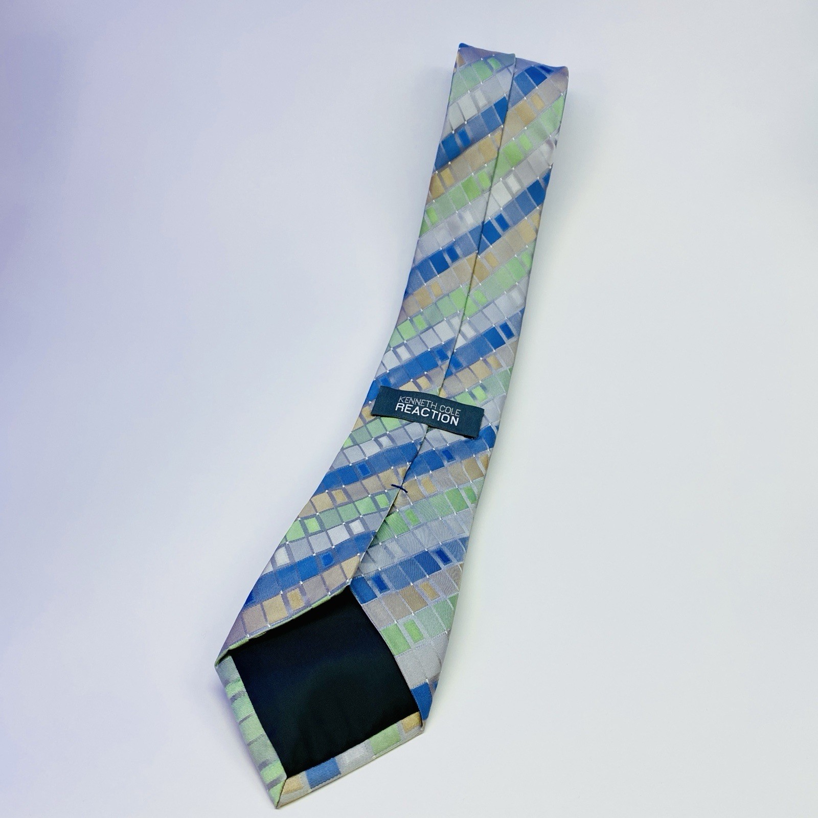 Kenneth Cole Reaction Men's Neck Tie 100 Silk Geometric Blue Green Grey Silver