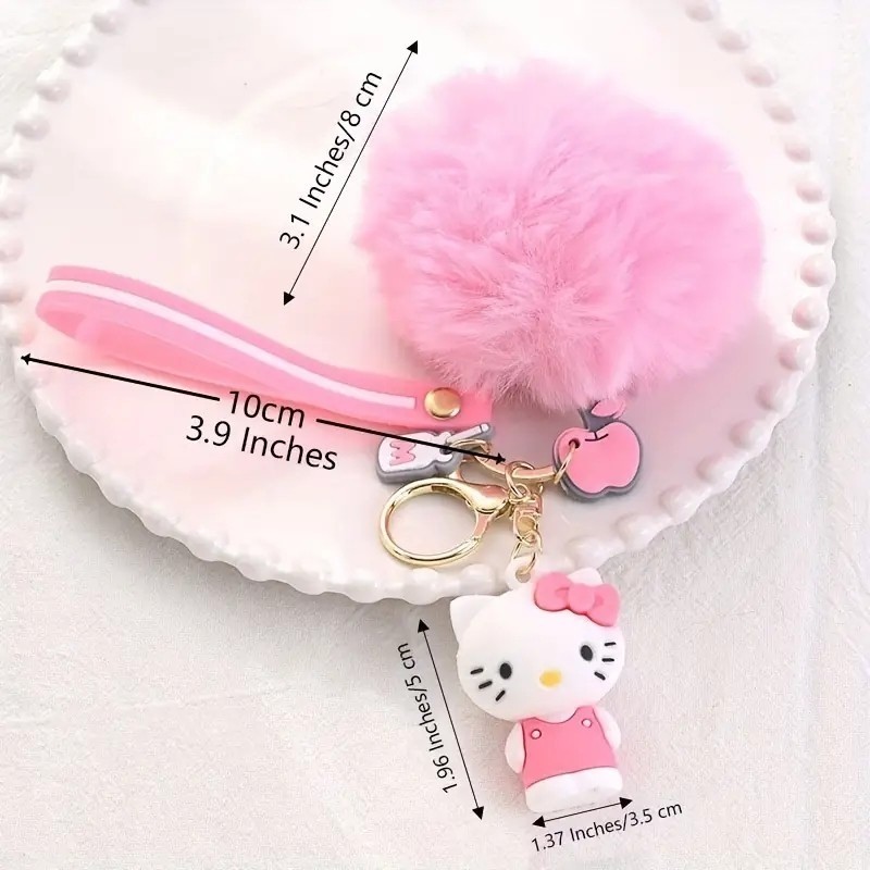 Hello Kitty Kawaii Pink Plush Bag Charm Keychain w Strap NWT Cute