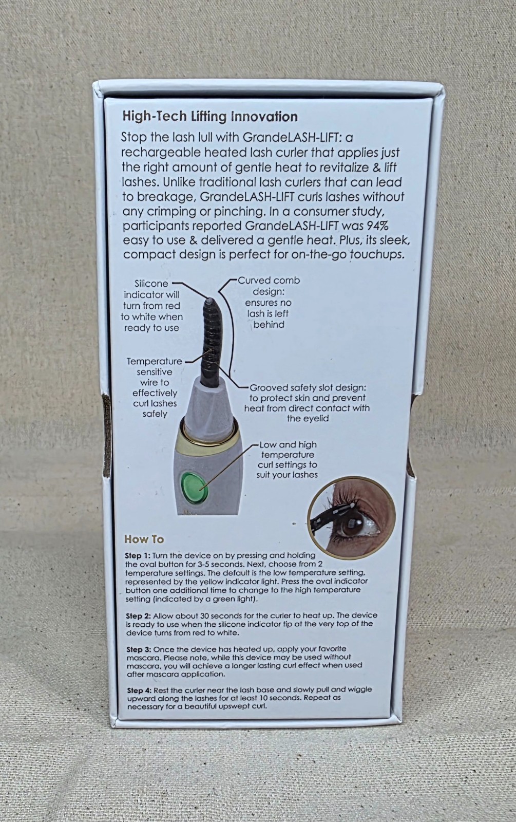 Grande Cosmetics LASH-LIFT Heated Lash Curler Long Lasting W/USB Cord NIB
