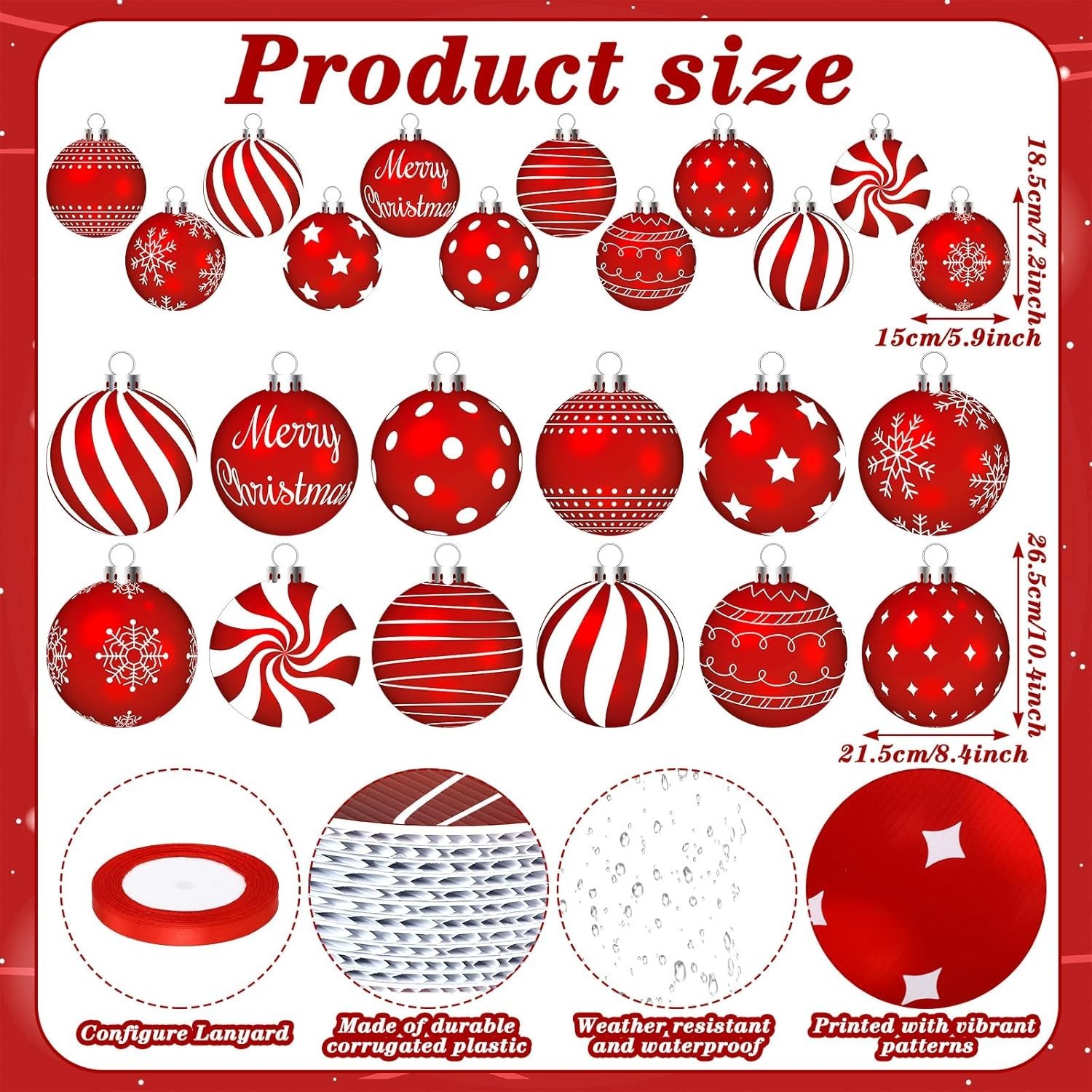 как выглядит 24 Pcs Christmas Decorations Outdoor Christmas Hanging Ornaments Peppermint C... фото