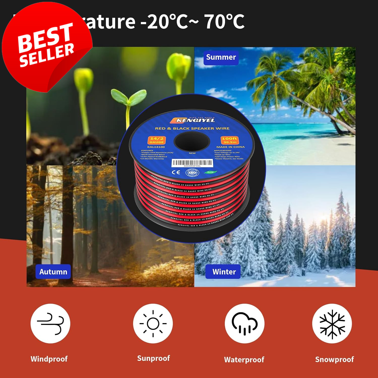 14 Gauge Speaker Wire 100ft 2 Conductor Red Black CCA 12V 24V Cable - US