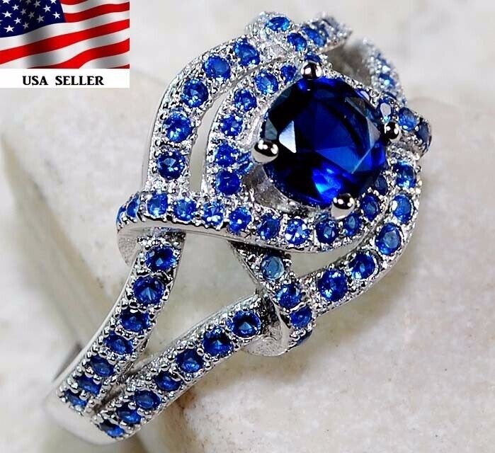 2CT Treated Blue Sapphire 925 Solid Sterling Silver Ring Jewelry Sz 6 MK1-8