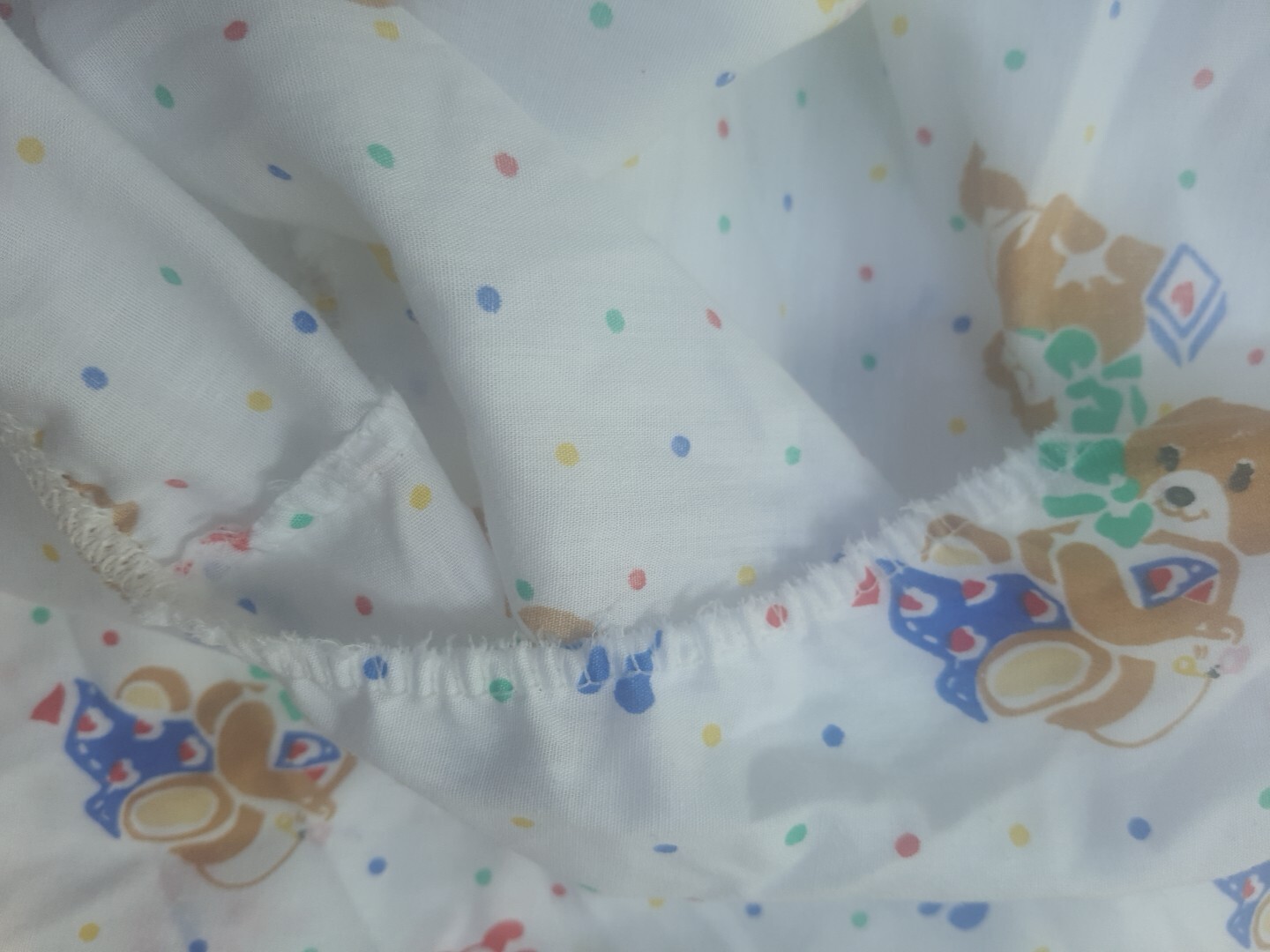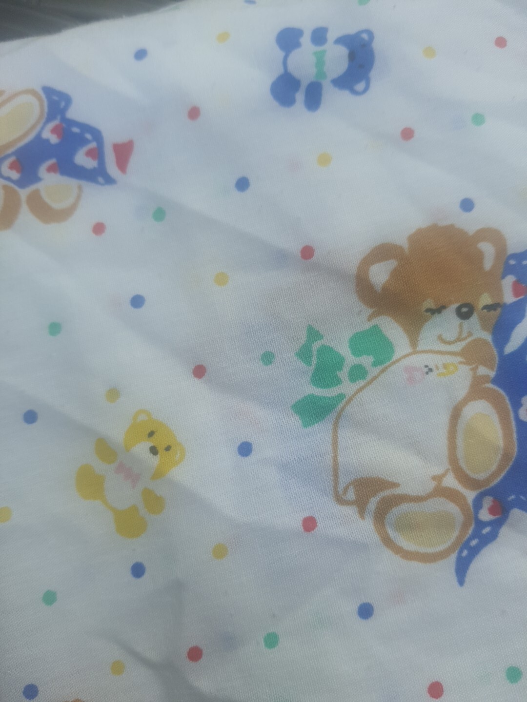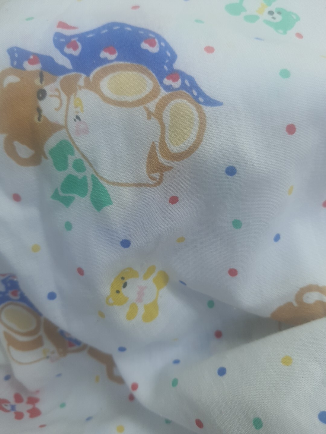 как выглядит VTG Baby DREAM Crib Sheet 80s Baby Teddy Bear Primary Colors Dots Hearts фото
