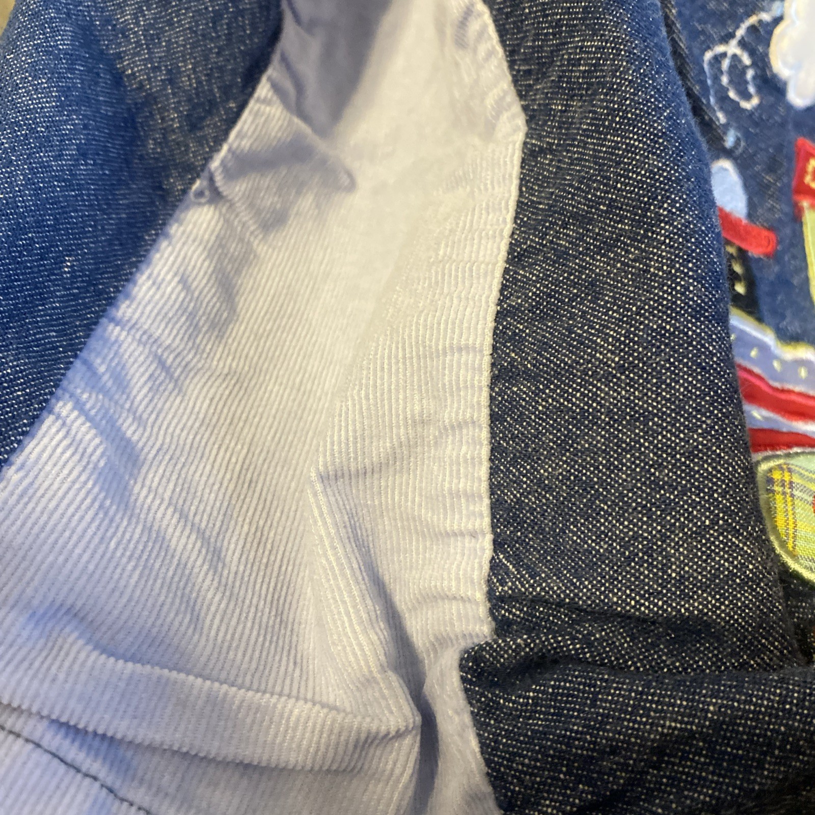 как выглядит Denim Boys Crib Skirt Train Theme Railroad Cars Toddler Baby Nursery Bedding фото