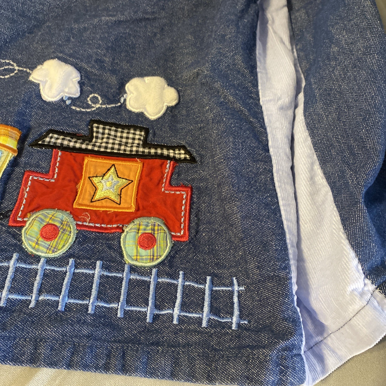 Denim Boys Crib Skirt Train Theme Railroad Cars Toddler Baby Nursery Bedding