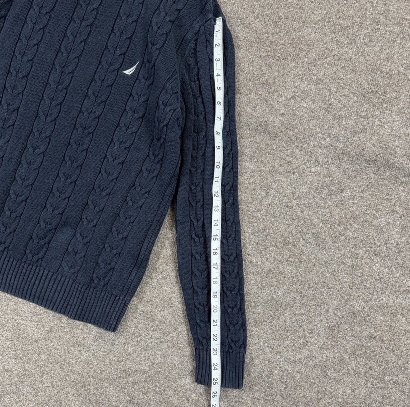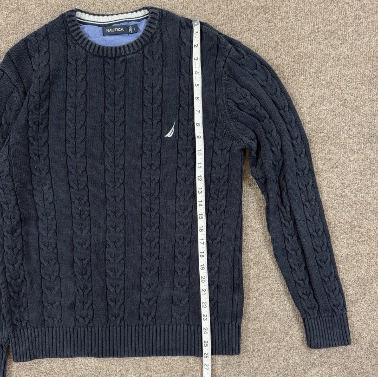 как выглядит Nautica Navy Blue Cable-knit Crewneck Pullover Sweater Mens L 100 Cotton Preppy фото