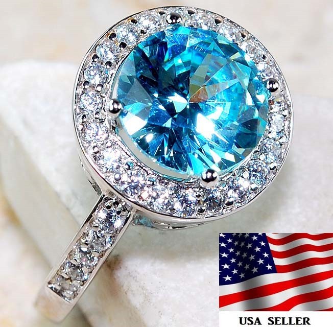 как выглядит 4CT Aquamarine Topaz 925 Solid Sterling Silver Ring Sz 7 MK1-4 фото
