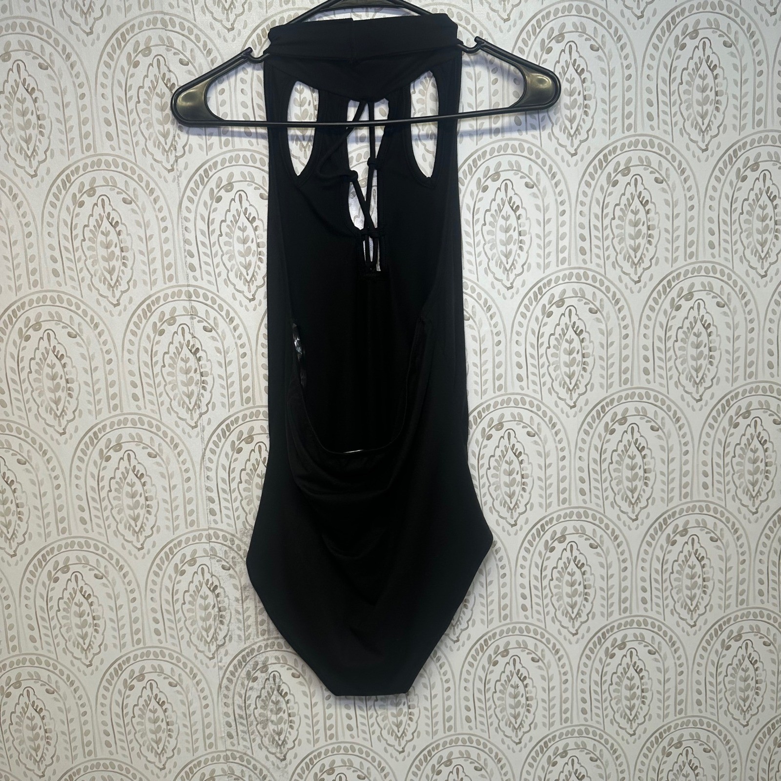 как выглядит Black Mock Neck Cutout Lace Up Back Bodysuit L фото